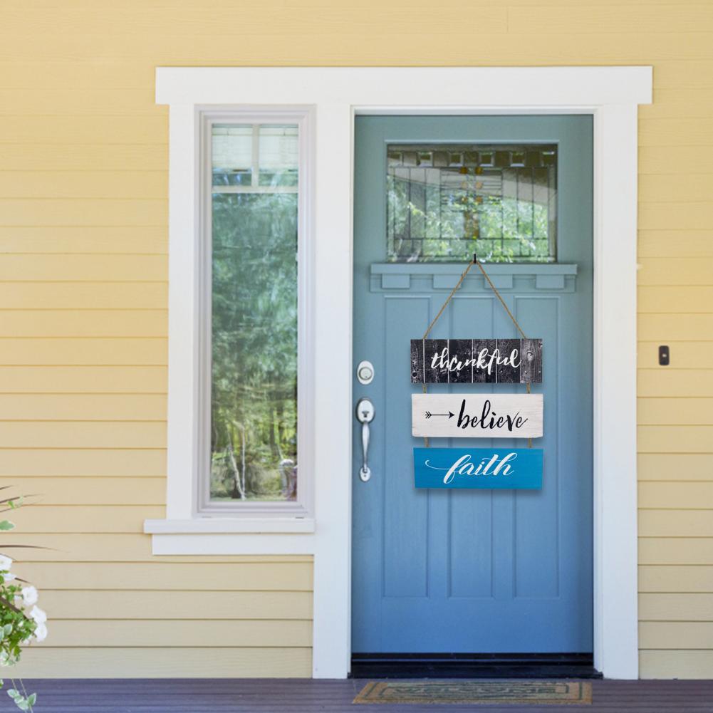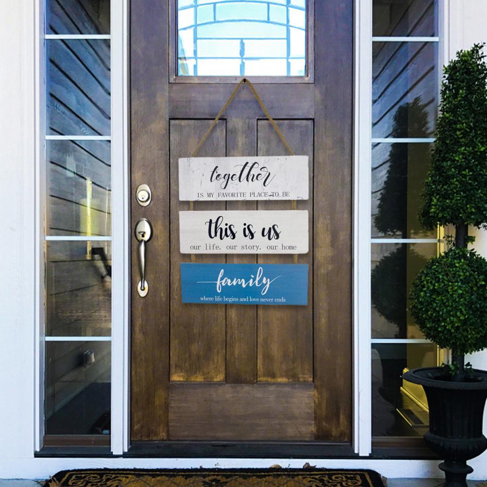 Изготовлен из трех деревянных досок, которые являются уникальными подвесными знаками и могут эффективно украсить вашу дверь.