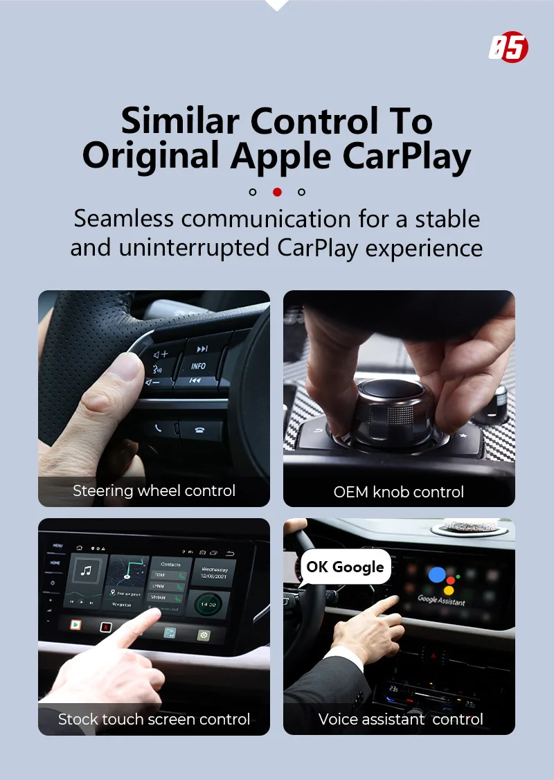 【 Сплит-экран 】добавлена Функция smart Split Screen, вы можете смотреть видео во время навигации, сделать ваше путешествие по дороге с семьей замечательным! Вы также можете совершать звонки без рук с Android смартфона или iPhone. Позвоните своему голосовому ассистенту для помощи в любое время, и вы можете держать фокус на дороге перед вами. Он сохраняет функции Центрального управления оригинальным автомобилем, такие как управление джойстиком, управление рулем, голосовое управление, управление рулем и т. д.