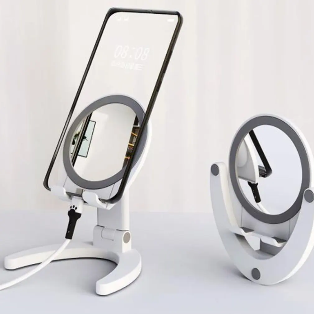 Зеркало для макияжа и держатель на мобильный телефон объединены в одно, а внешний вид зеркала можно отрегулировать под разными углами, что делает его более удобным для нанесения макияжа. Встроенный складной удобный для хранения и переноски, не занимает места.