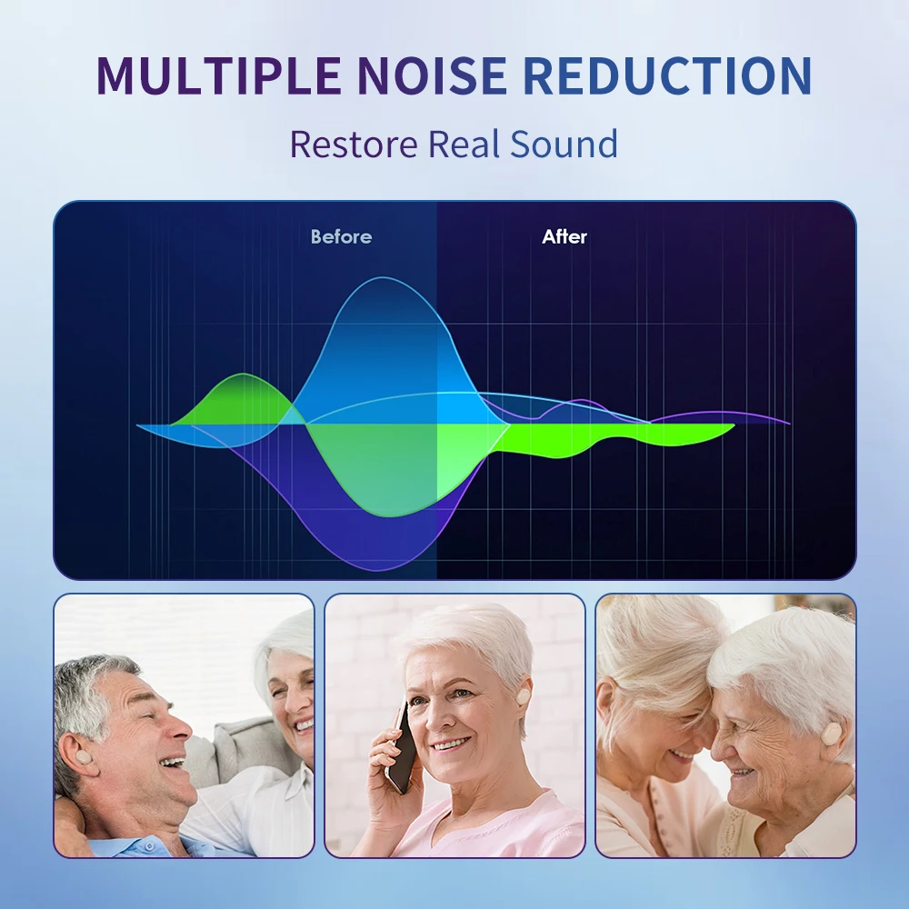 Мини-невидимки для пожилых, слуховой слуховые аппараты с зарядный чехол Портативный усилитель звука с цифровым Дисплей для пожилых, слуховой людей с нарушениями Магнитная Зарядка