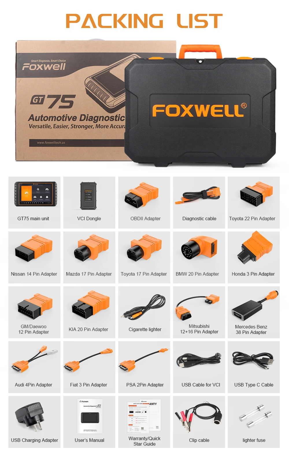 【 2022 новейший, OE уровень все системы диагностики 】foxwell GT75 имеет те же диагностические возможности, что и OE инструменты, которые ранее доступны только для дилеров. С полным возможности для кодов, данных в режиме реального времени, активные тесты и данные по ECU, поставляется с OBD комплект адаптеров в комплекте, который является профессиональным диагностический инструмент сканирования, которые могут получить доступ ко всем доступным транспортного средства.