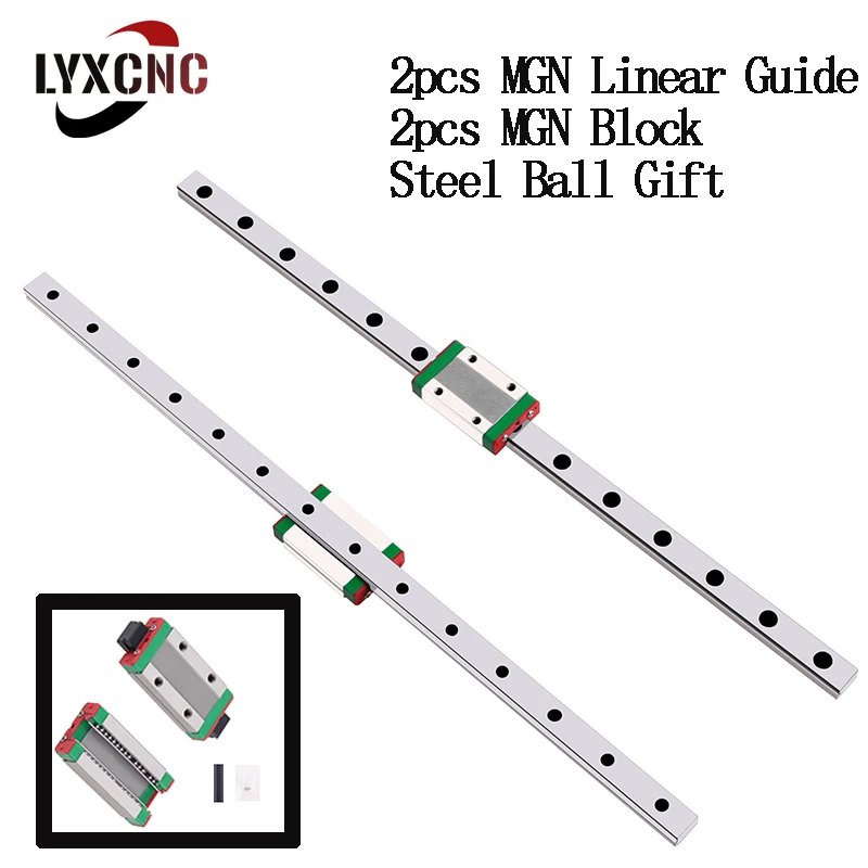 MGN9 MGN12 MGN15 MGN7 Miniature Linear Rail Slide 2pcs MGN Linear Guide+4pcs MGN Carriage 400 500 550 600 800 1000mm CNC 3D Printer
