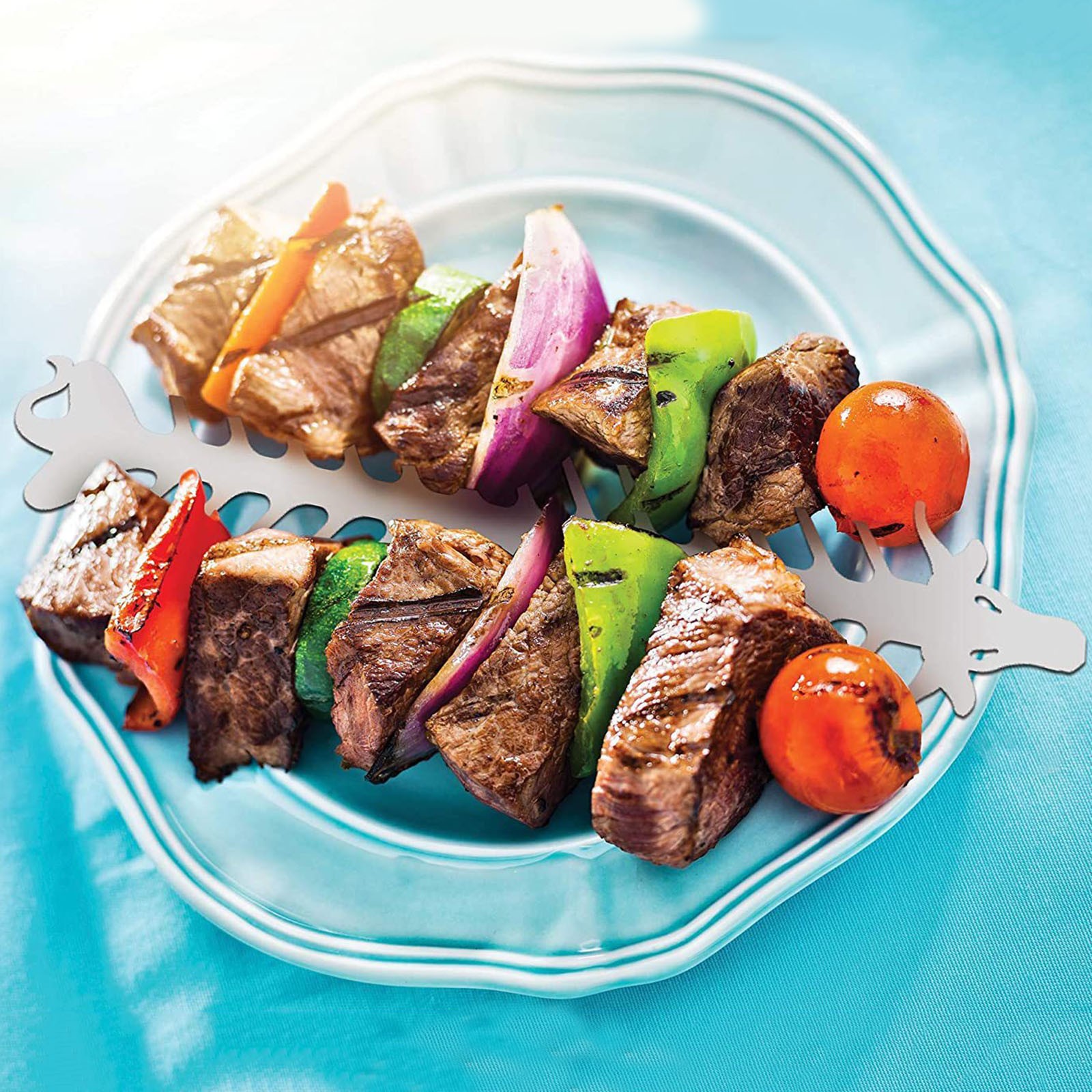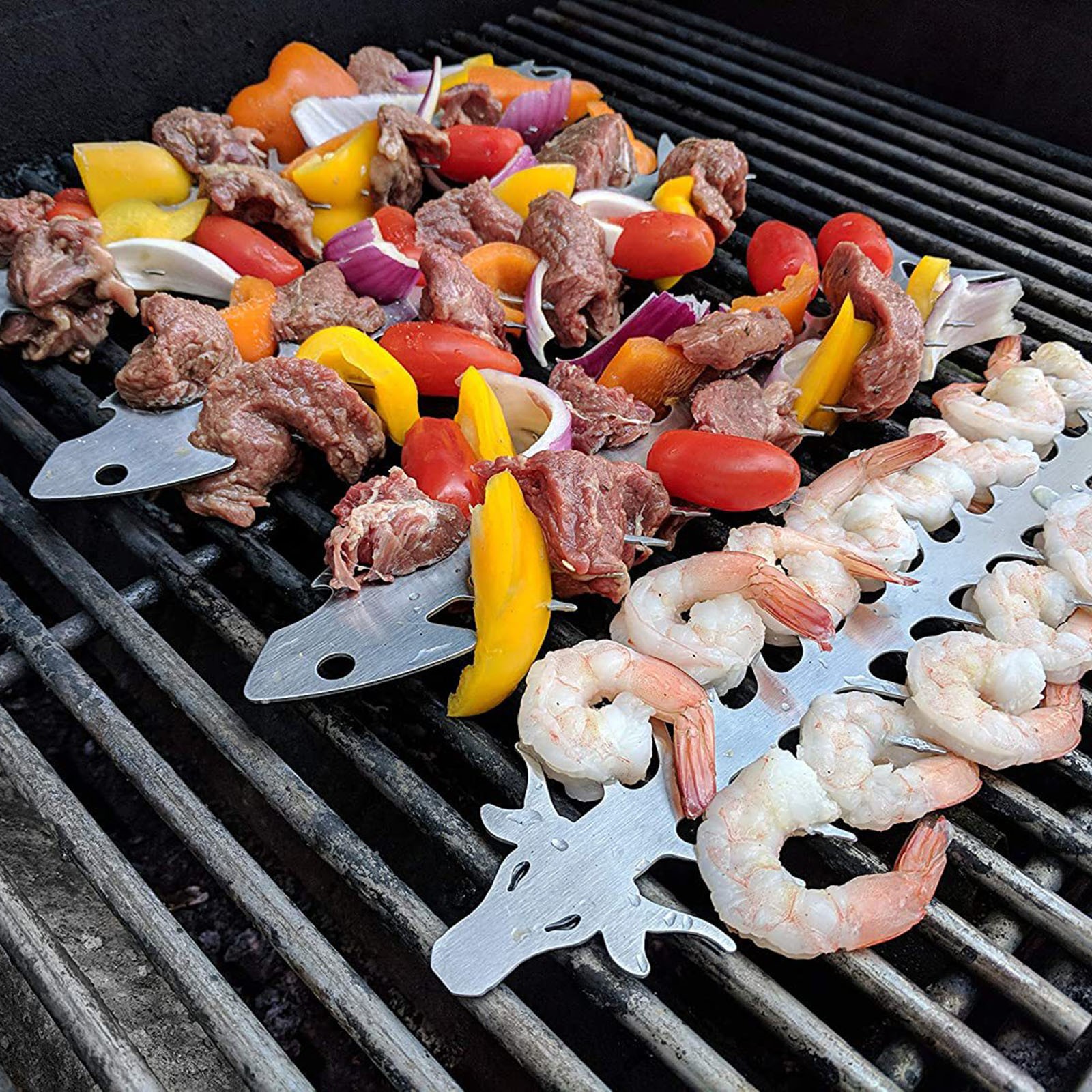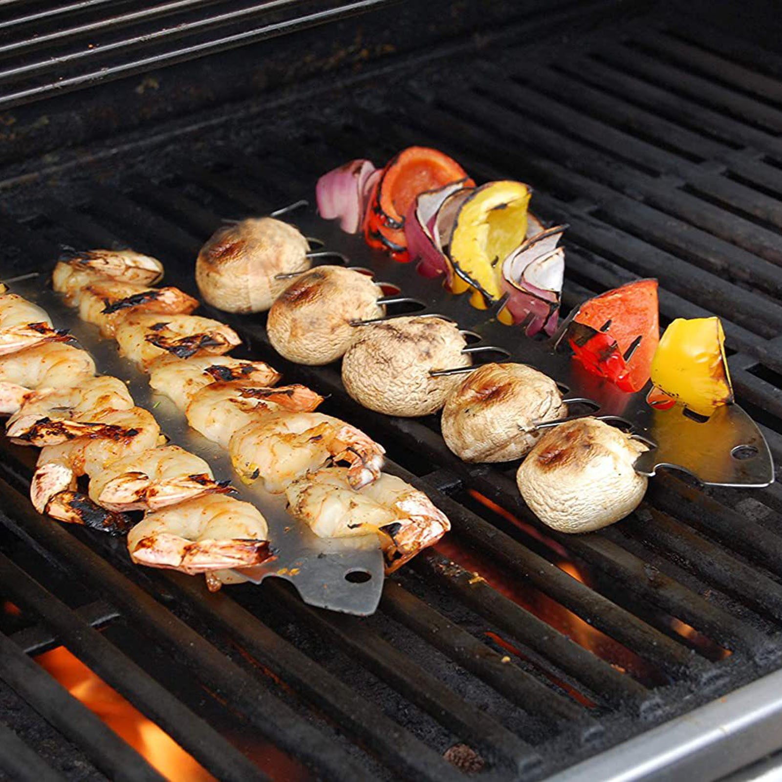 Идеальный аксессуар для гриля-кончики шпажки и дизайн предотвращают открытие гриля для мяса и овощей для более равномерной приготовления пищи. Конструкция головки позволяет зажимам легко поворачивать Шпажки для гриля из нержавеющей стали на решетке.