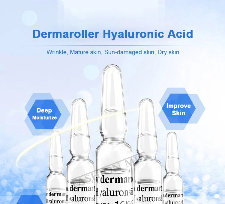 Дермароллер гиалуроновые ампулы содержат высококонцентрированную сыворотку гиалуроновой кислоты для ежедневного ухода за кожей. Сыворотка в ампулах обеспечивает естественное увлажнение и способствует новому образованию коллагена и эластина в теле. При регулярном использовании ваша кожа выглядит более молодой и свежей, а морщины значительно уменьшается.