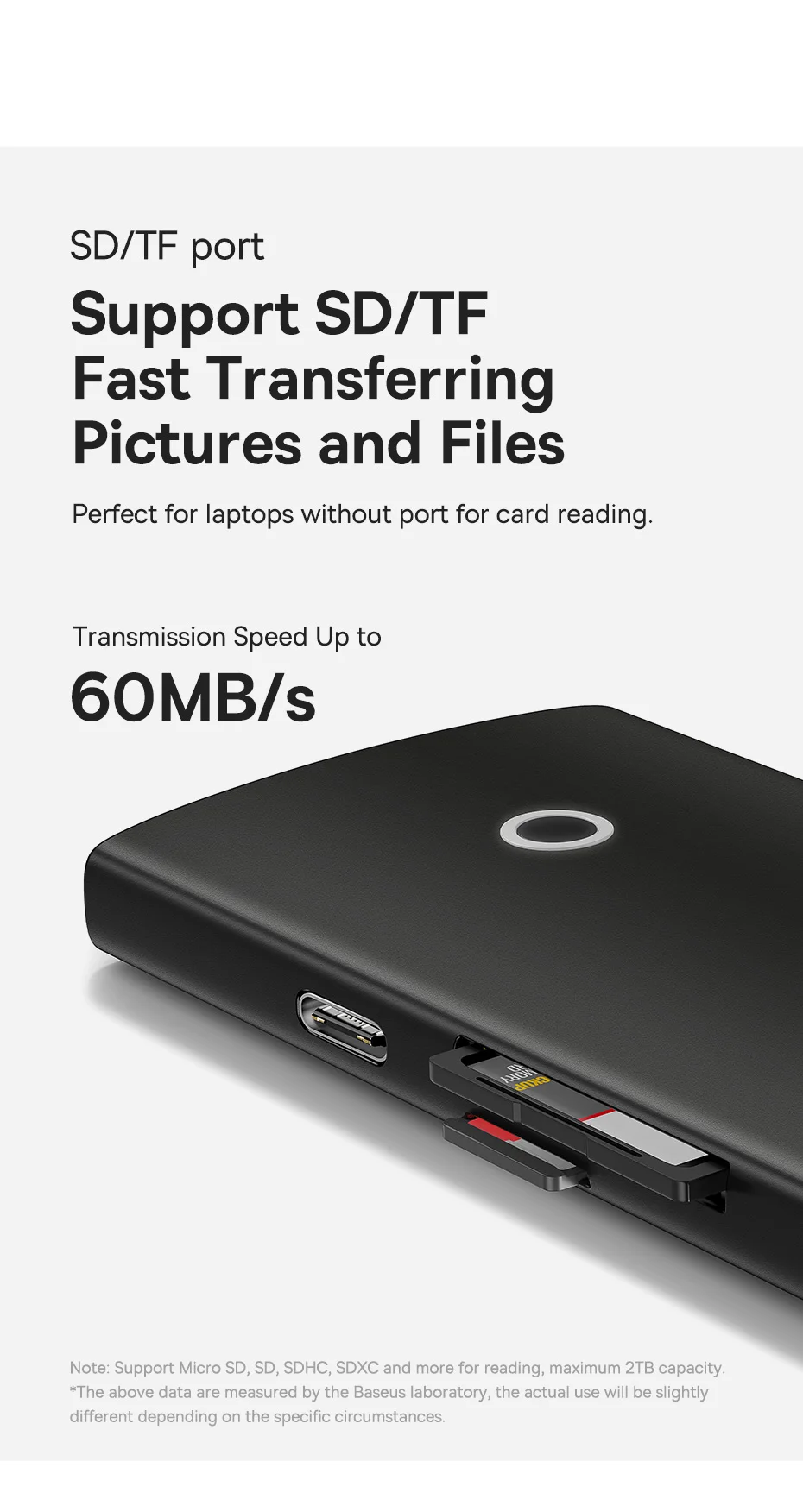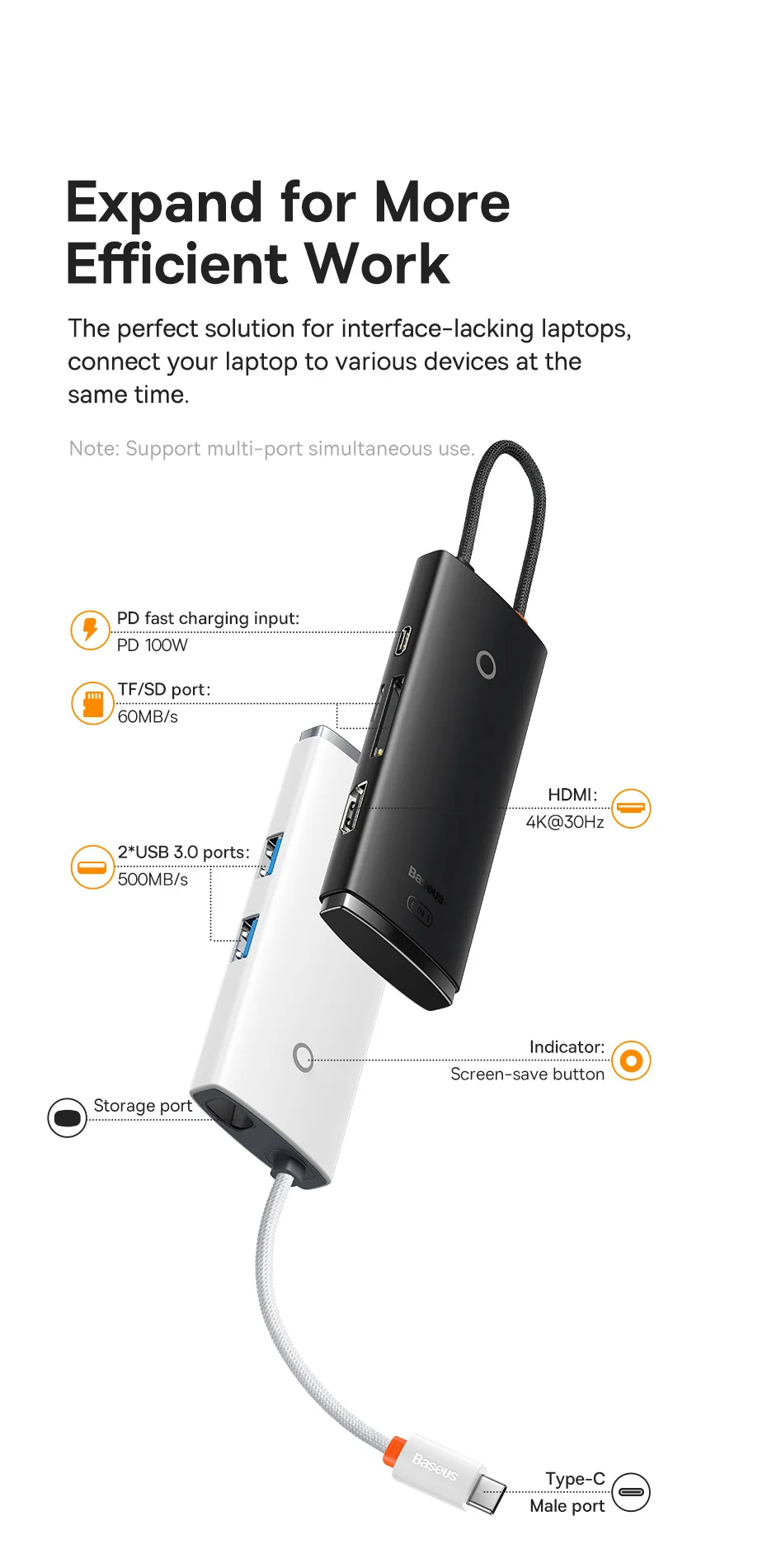 HDMI * 1 (4K @ 30 Гц), USB 3,0*2, PD 100 Вт * 1, слот SD * 1, слот TF * 1
