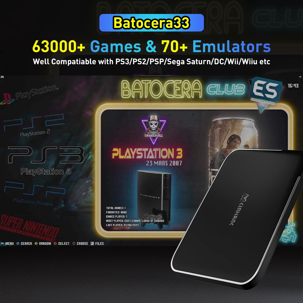 Kinhank 500G HDDhas предварительно установлен с последней игровой системой Batocera33, с 63000 + классическими ретро-играми, подключи и играй. Поддержка PS3/PS2/P32/PSP/Wii u/Neogeo/Sega saturn/Naomi/Game Cube и т. д.
