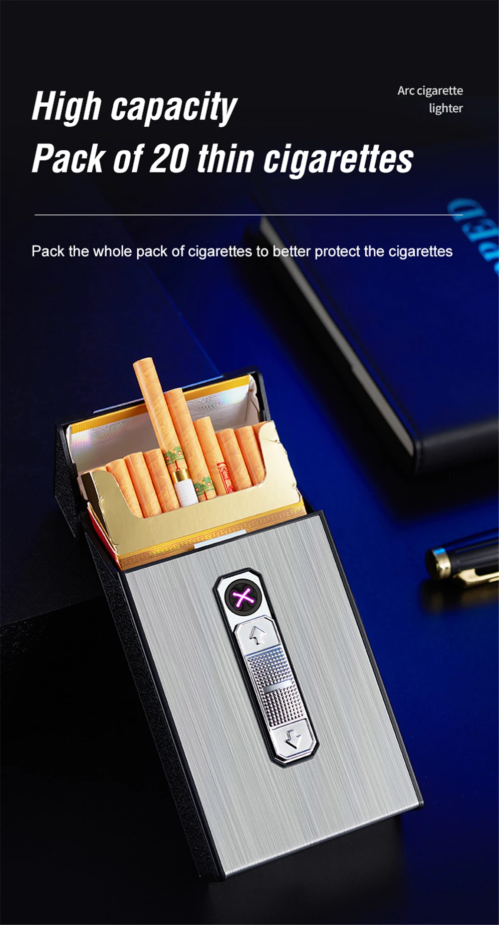 Женский чехол для сигарет USB Зажигалка весь пакет тонкая коробка для сигарет перезаряжаемая двойная дуга Зажигалка держатель для табака аксессуары для курения