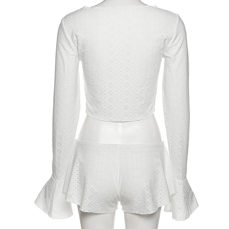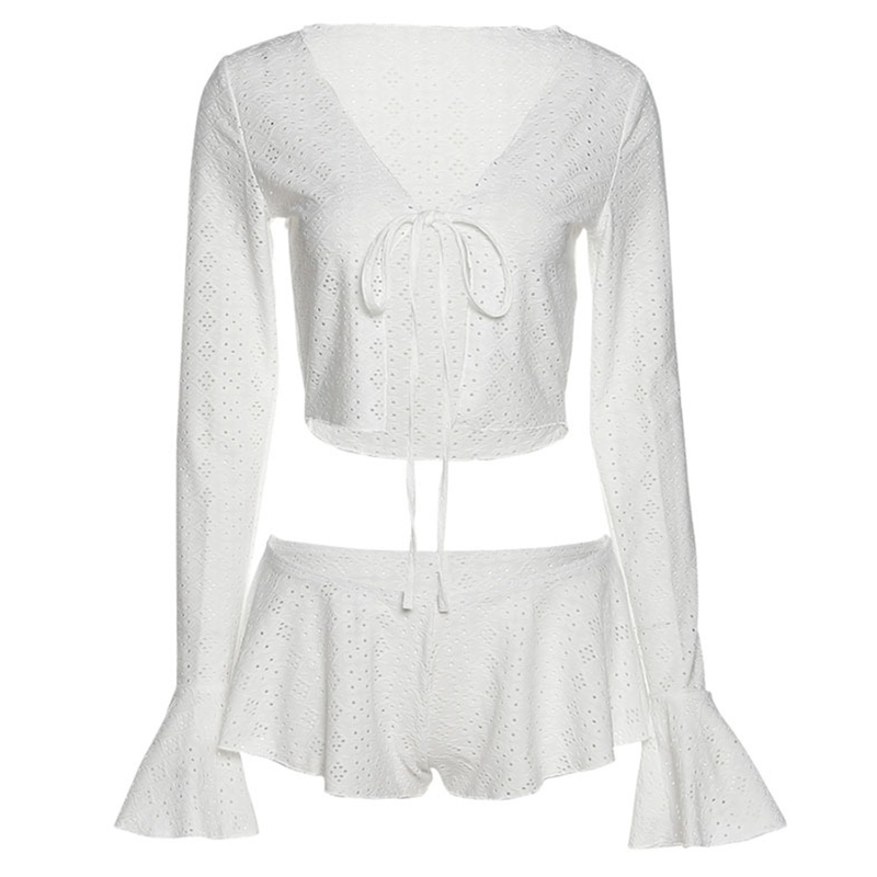 Сексапильный укороченный топ из 2 предметов + мини-шорты; Купальник; Сплошной цвет; Открытая вышивка; Цветочный узор.