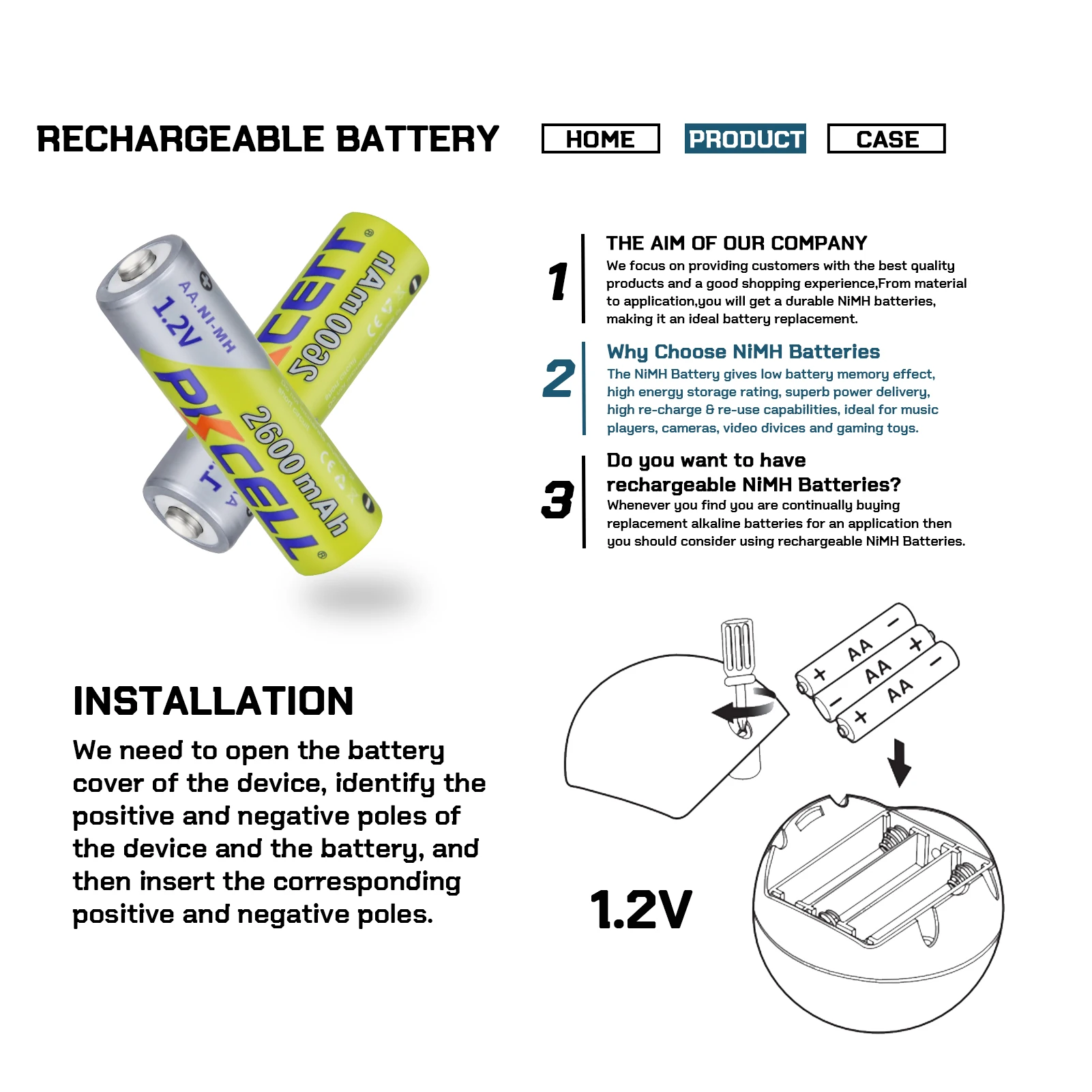 Тип батареи:Аккумуляторная батарея 1.2V Ni-MH AA 2600mAh