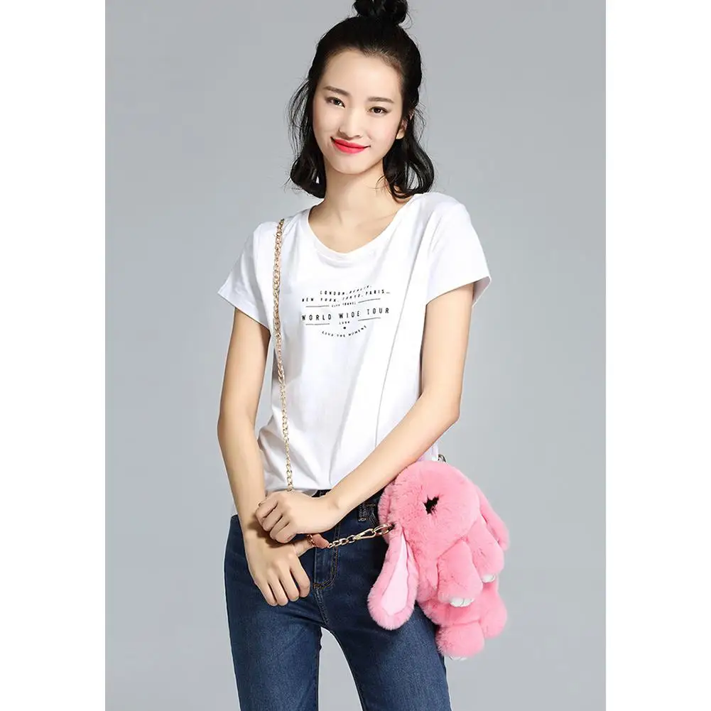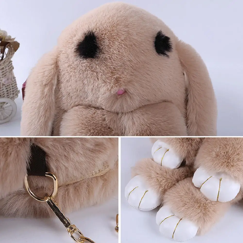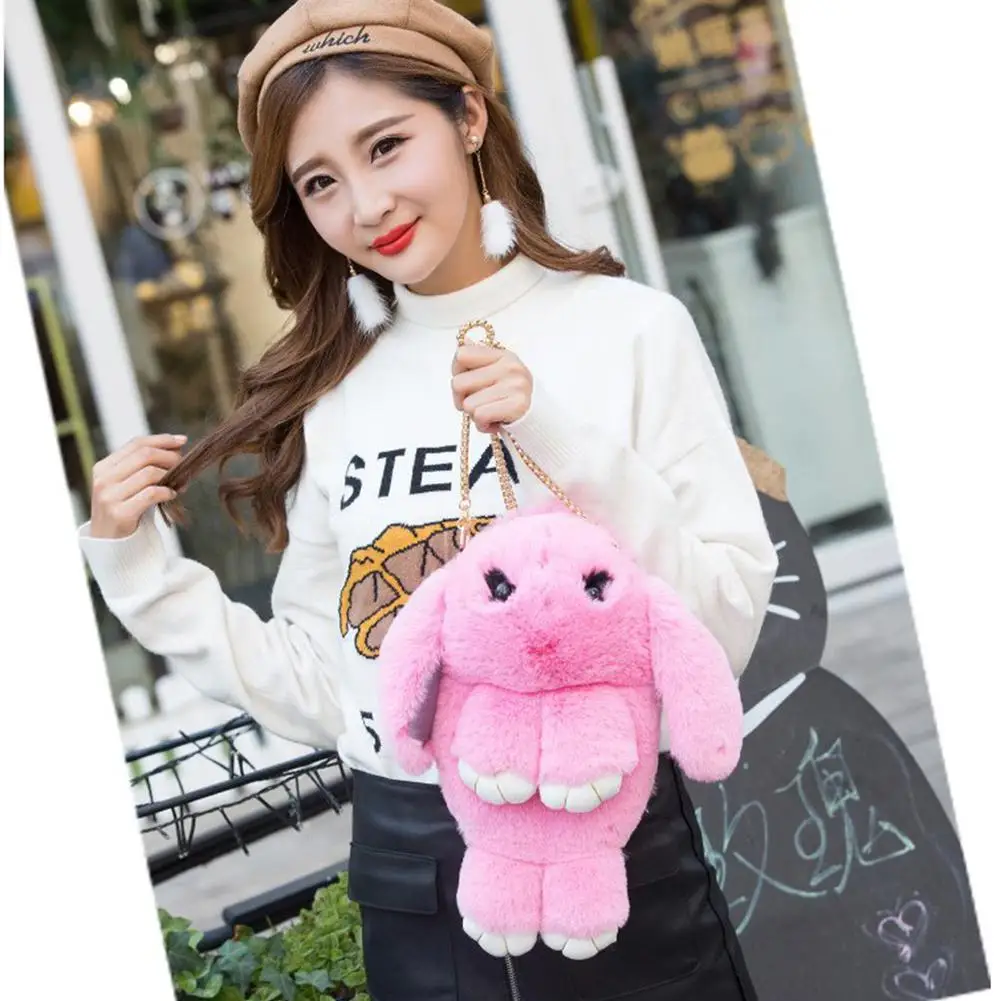 Милая плюшевая сумка с кроличьим мехом и помпонами, женская сумка на цепочке с мультяшным Кроликом, мягкая плюшевая сумка на ремне