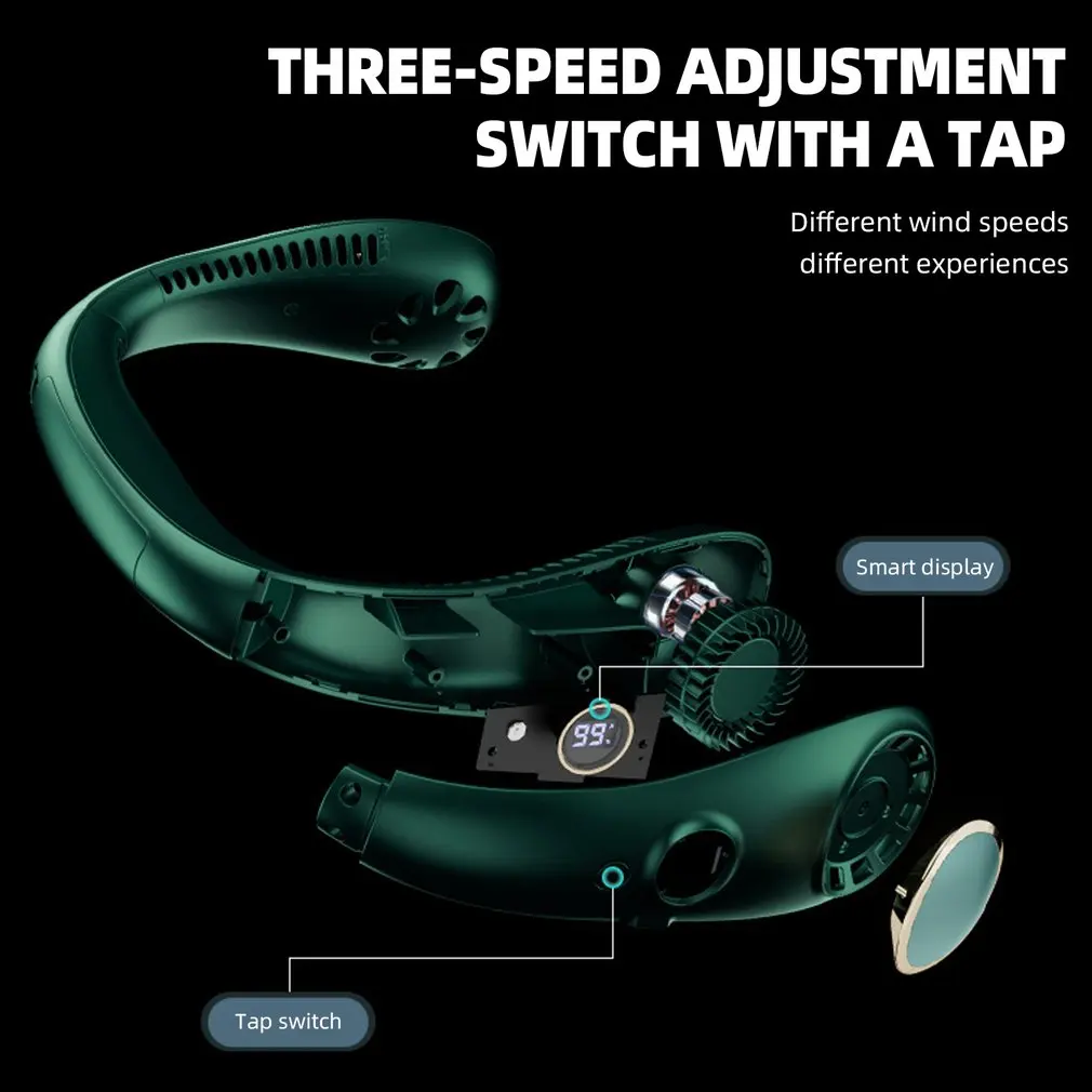 Этот вентилятор с креплением на шею имеет трехскоростную скорость ветра. СВЕТОДИОДНЫЙ цифровой дисплей, мониторинг в реальном времени, функция, шестерня, мощность. Встроенный аккумулятор большой емкости, низкий уровень шума и создает ощущение прохлады для вашего лета.
