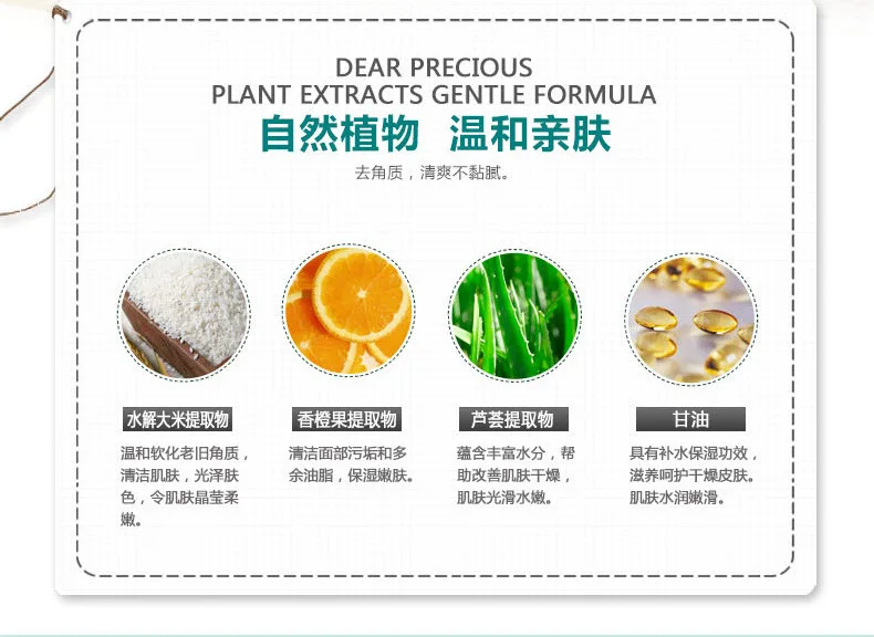 Содержит растительные ингредиенты риса, очищает и питает кожу, делает кожу нежной