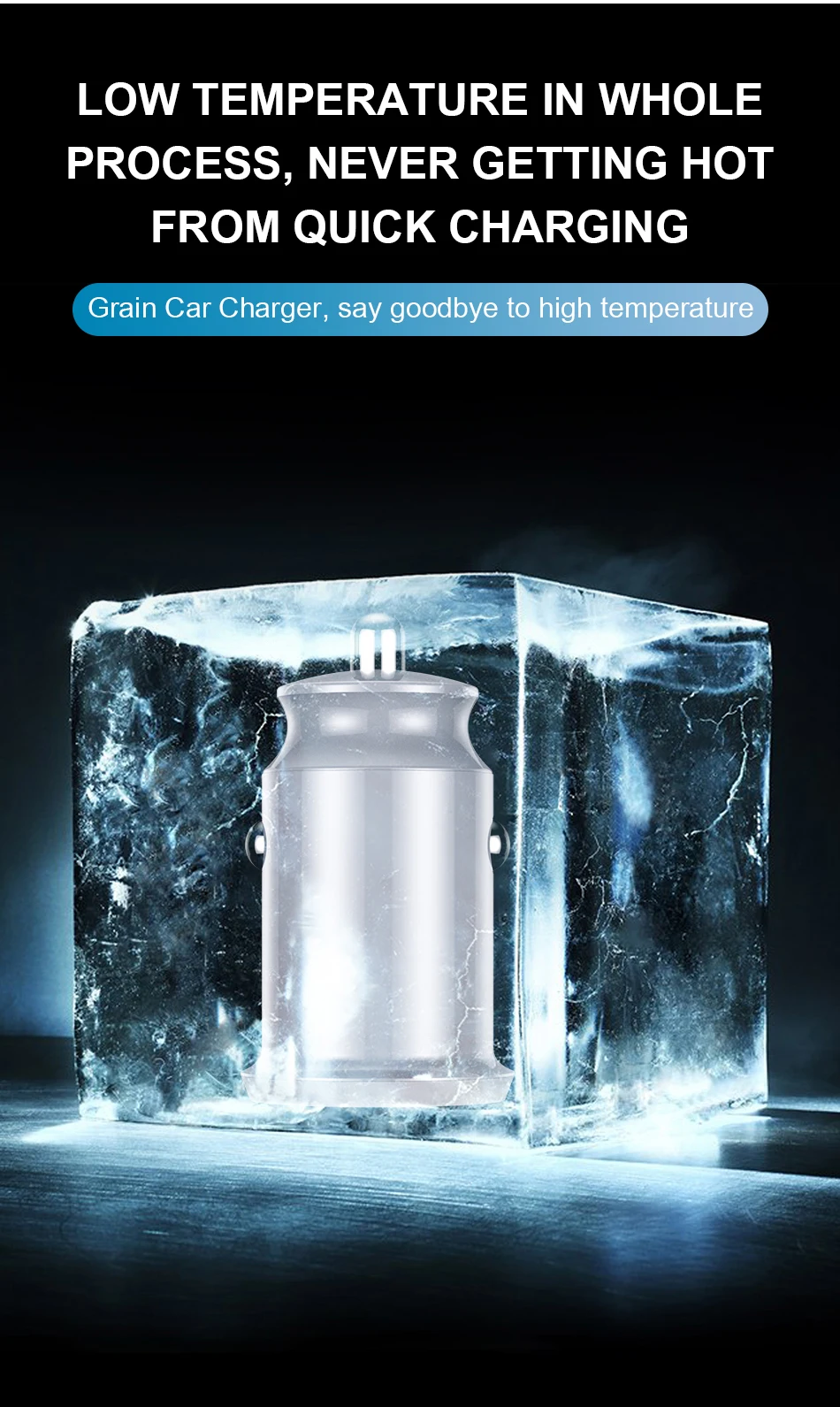 • Умная система снижения температуры рассеивает тепло внутренних компонентов автомобильного зарядного устройства,