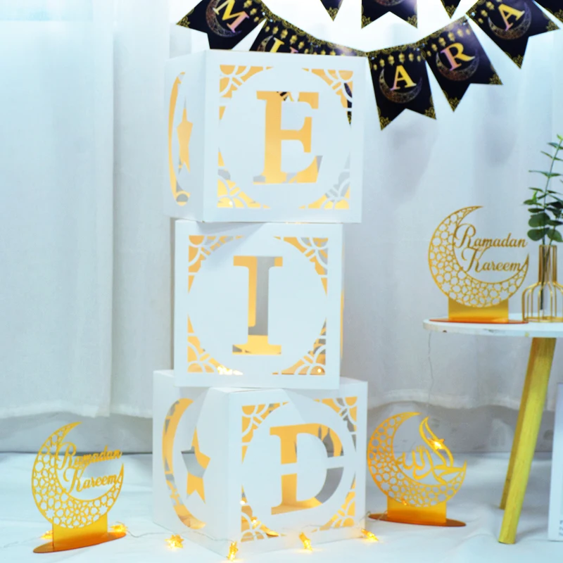 Eid Mubarak Box декорация светодиодный светильник гирлянда Ramadan Mubarak Декор Баннер Звезды Луна Anniversaire вечерние Globos помощь Декор