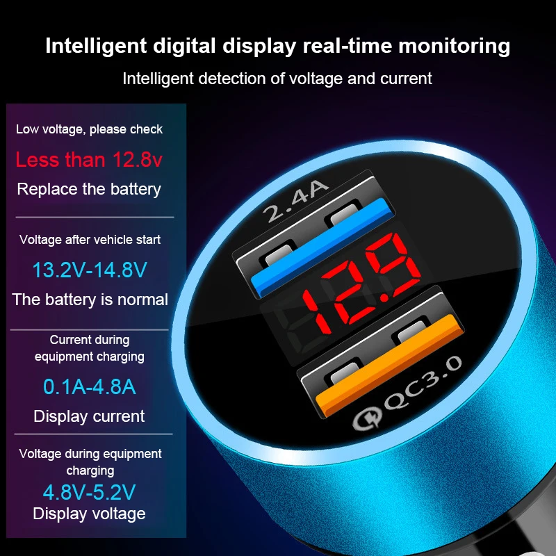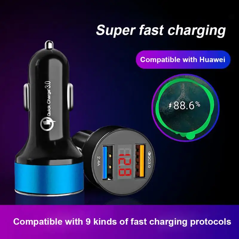 4.8A машинная Зажигалка для сигарет Зарядное устройство с двумя портами USB для телефона 12V-24V светодиодный Дисплей QC3.0 быстрой зарядки Алюминий смартфон электронные Зарядное устройство