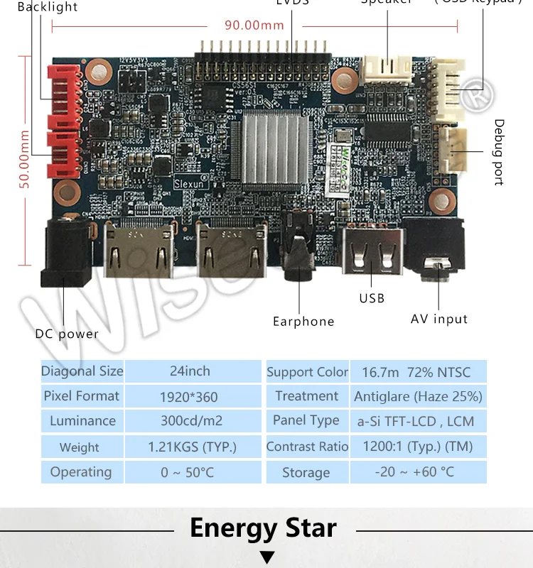 С интегральной системой подсветки WLED, без драйвера подсветки, без сенсорного экрана. Он имеет диапазон рабочих температур 0 ~ 50 °C, Диапазон температур хранения-20 ~ 60 °C.