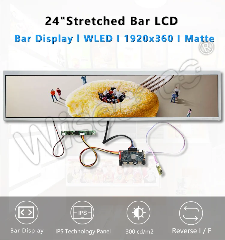 Это 24,0 "Диагональ a-Si TFT-LCD дисплей панели продукта (у нас есть 19"-28 дюймов стрейч-бар дисплей также, оба спецификации и плата привода одинаковы).