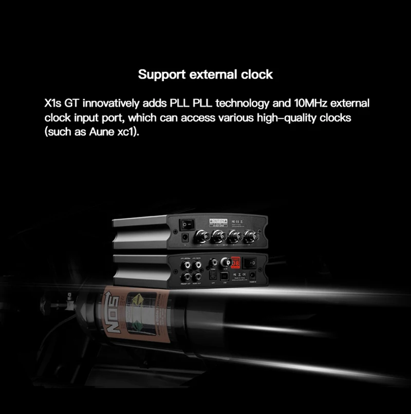 PLL (Цикл блокировки фазы) точный алгоритм часов и внешний вход часов:-Aune X1s GT оснащен PLL, точный алгоритм цифровых часов с блокировкой фазы, который передает соответствующие данные частотной реакции на DAC. Поддерживает правильную синхронизацию между всеми компонентами аудиоцепи. Aune также имеет внешний входной порт часов 10 МГц для подключения внешних цифровых часов и изучения большего количества возможностей звука.