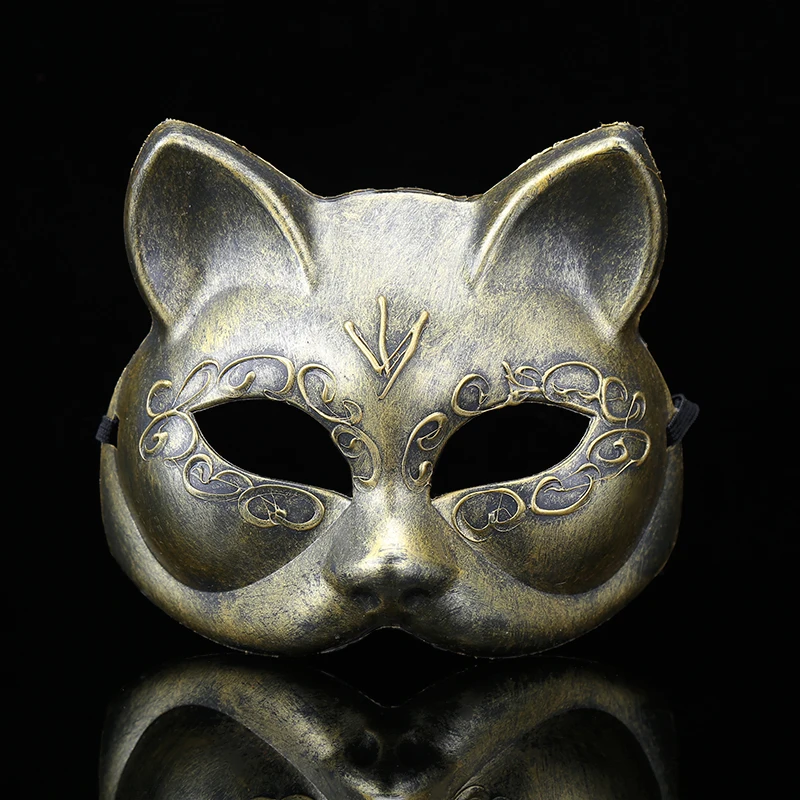 Античная маска для лица в стиле ретро с изображением лисы Венецианская маска для кошки цвет золотистый, серебристый реквизит для выступлений для мужчин и женщин