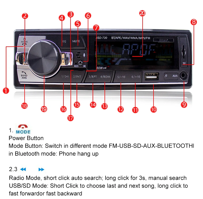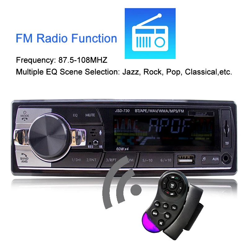 Support three-band radio store FM1-FM2-FM3, and can preset 18 radio stations. (Radio frequency: 87.5-108MHz).
