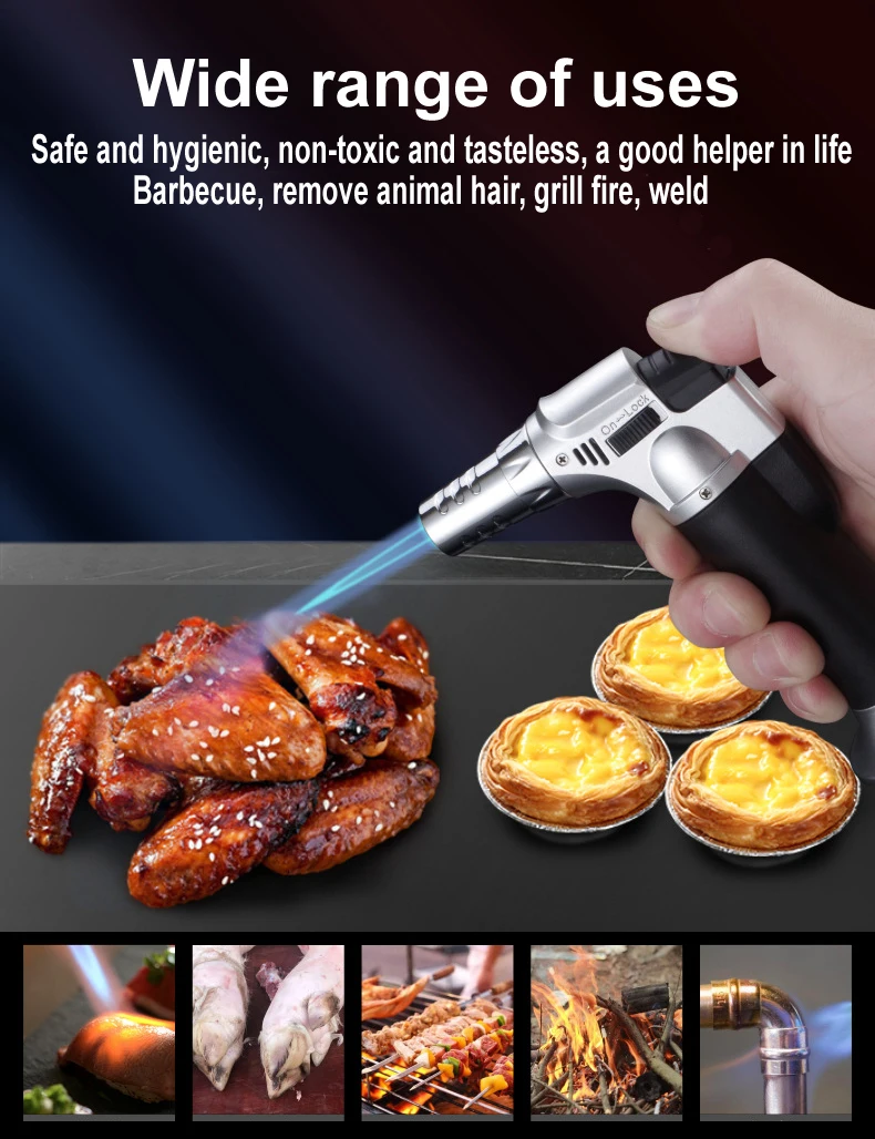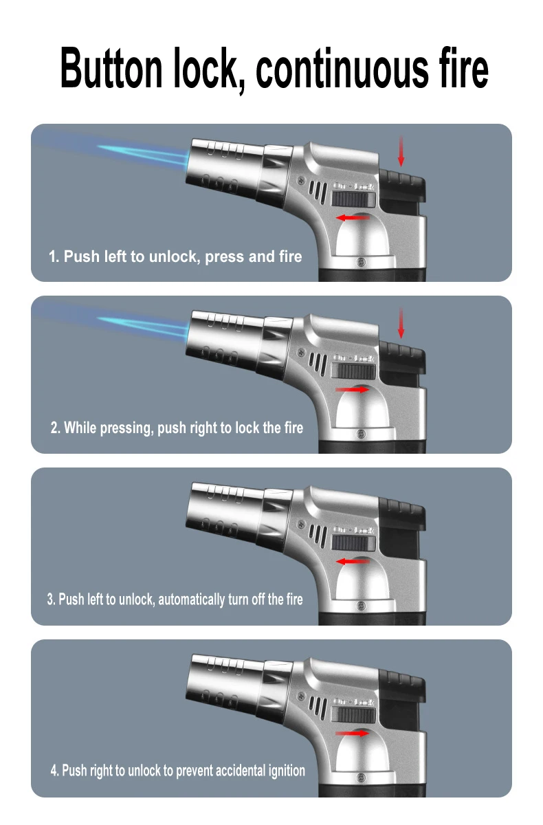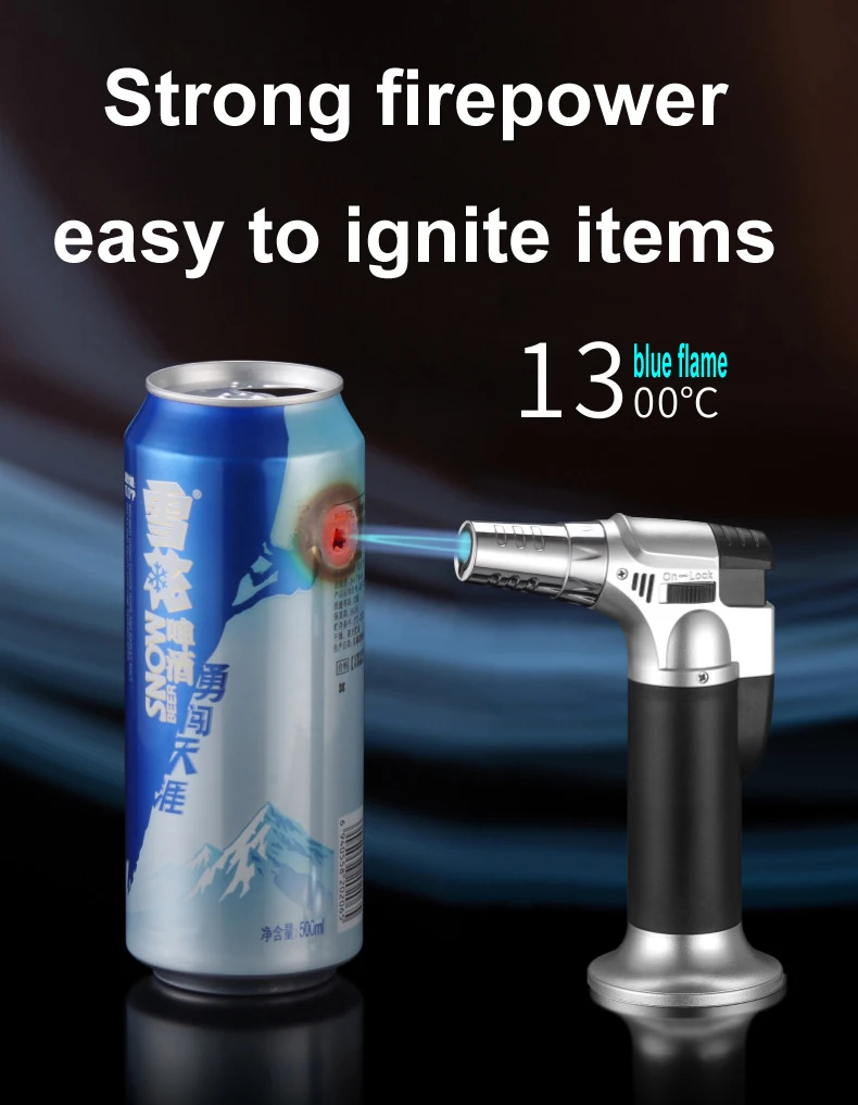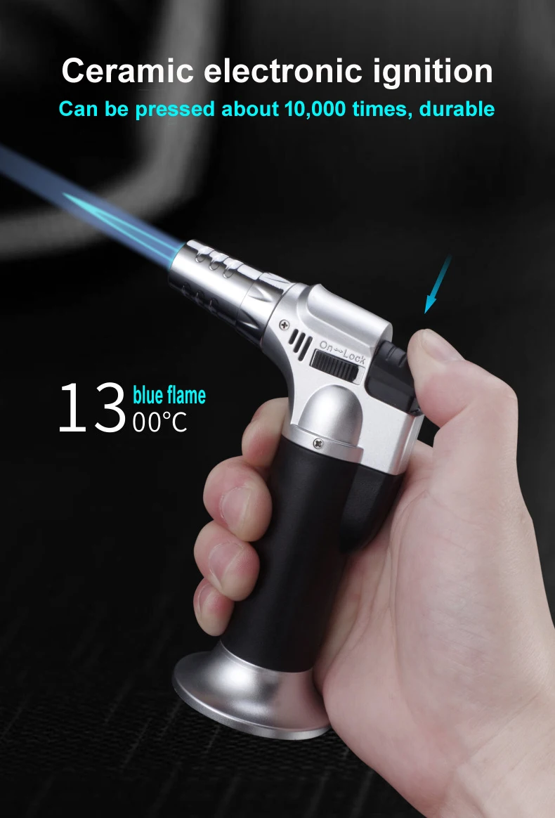 1. Ceramic electronic ignition, 1300 ℃ blue flame, powerful firepower, easy to ignite items; can be used upside down at 360°, free angle ignition, suitable for various scenarios (can light cigarettes, cigars, mosquito coils, moxa, baking, barbecue, removal animal hair, fire, welding).
