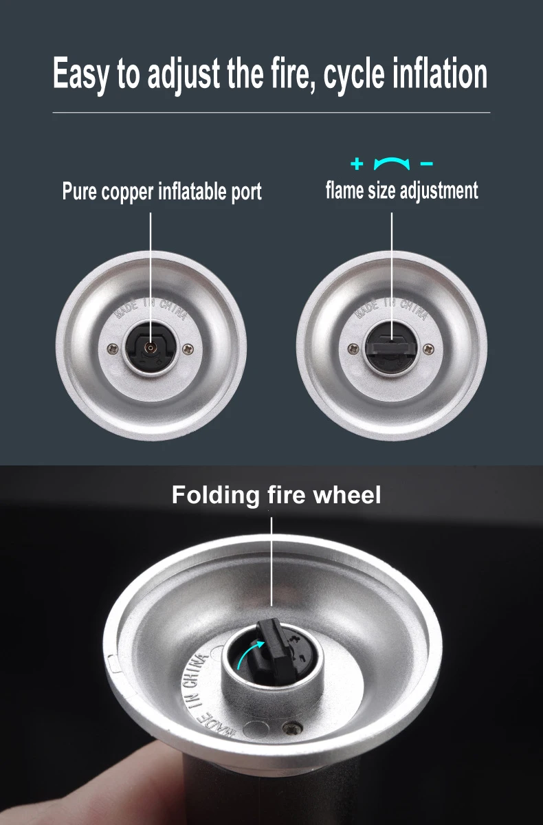 4. Recyclable inflatable, pure copper inflatable port, folding fire wheel, easy to charge.