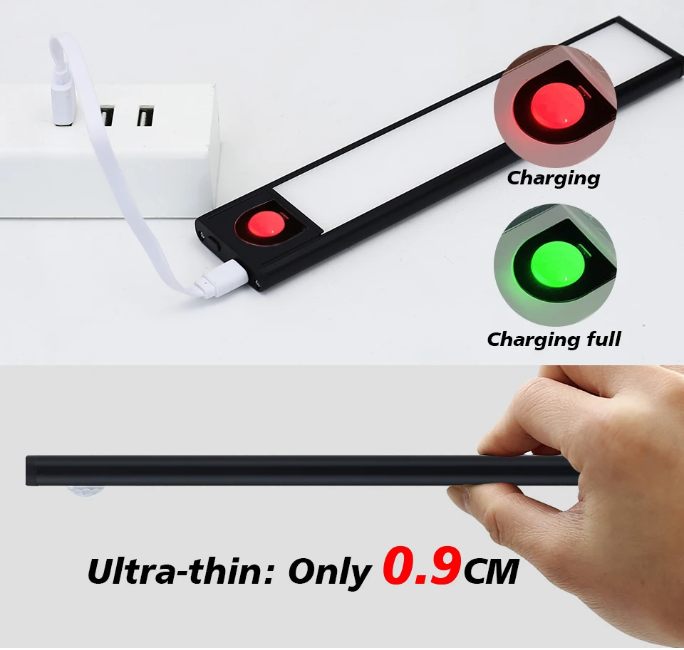 LED Cabinet Light Ultra-Thin Kitchen Lamp USB Rechargeable PIR Motion Sensor 20/40cm Bedroom Closet Wardrobe Lamp Night Light
