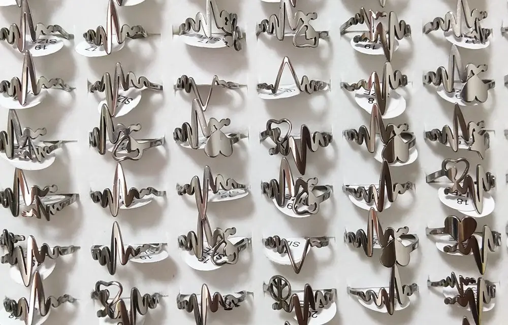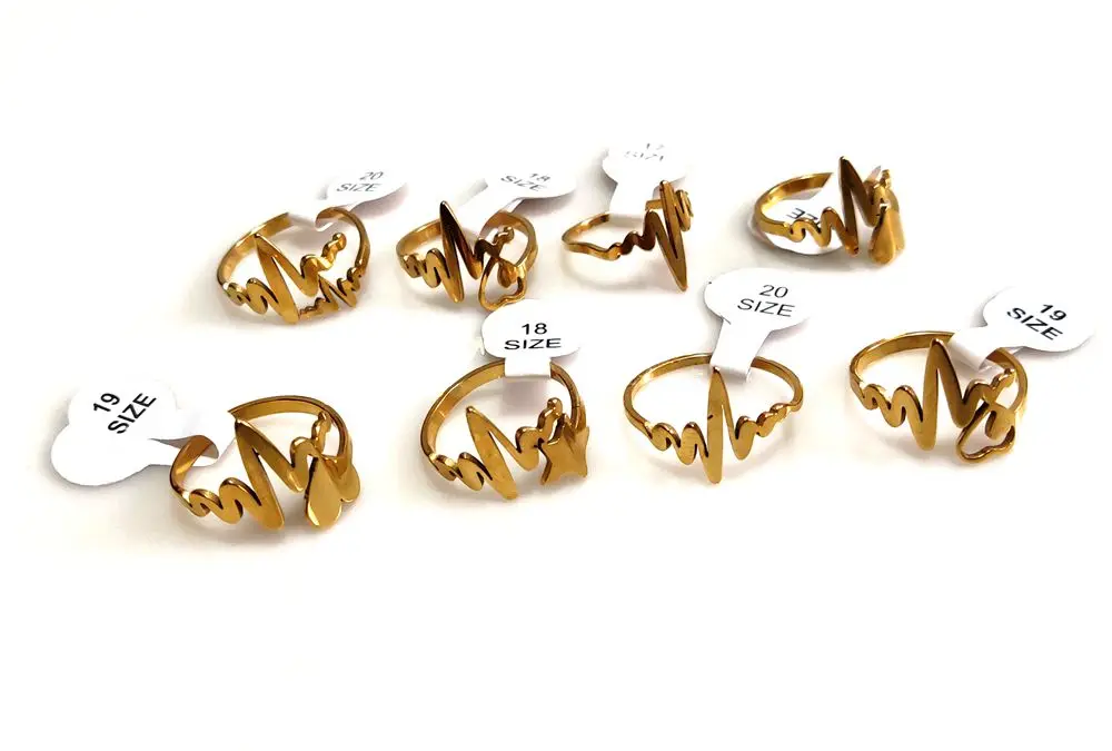 30 шт золотые серебряные кольца из нержавеющей стали с электрокардиограммой сердцебиения