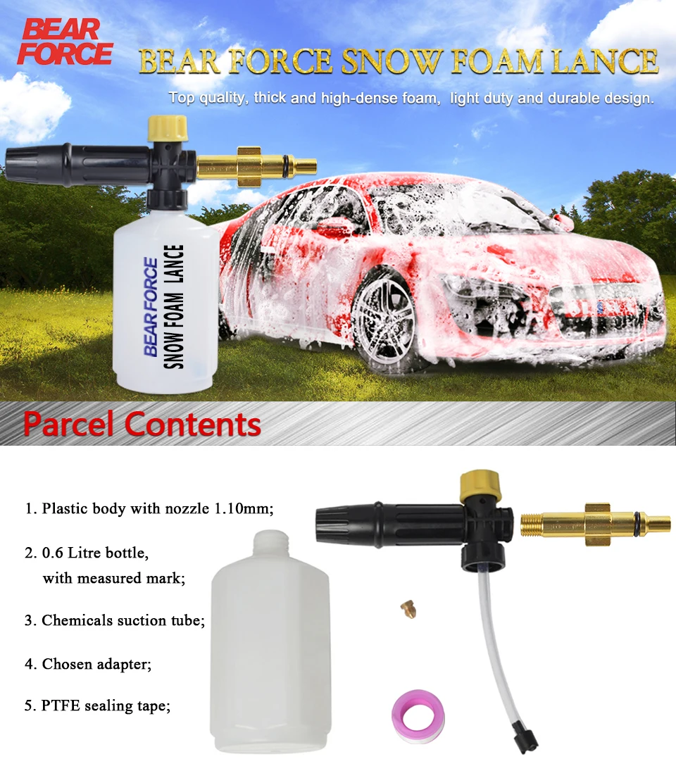 Низкое потребление моющего средства, но толстая пена для снега, экономичная конструкция, бутылка 600 мл достаточно для мытья 1 автомобиля
