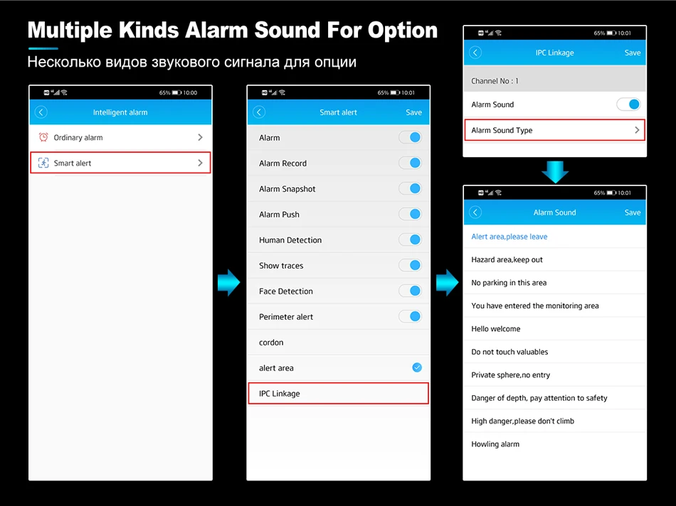 Есть только 2 варианта (другие опции не работают): «интеллектуальное оповещение» и «интеллектуальная инфракрасная» модель.