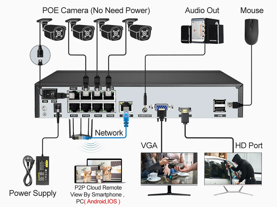 Экономьте деньги и удобно, POE NVR = NVR + POE коммутатор.