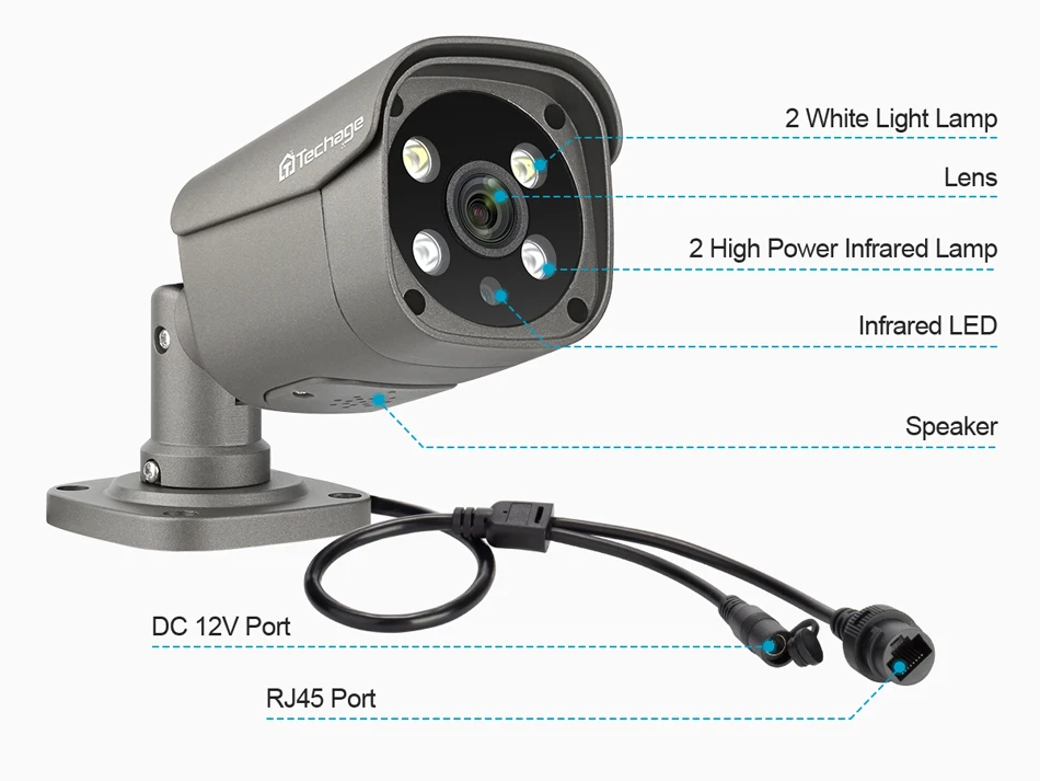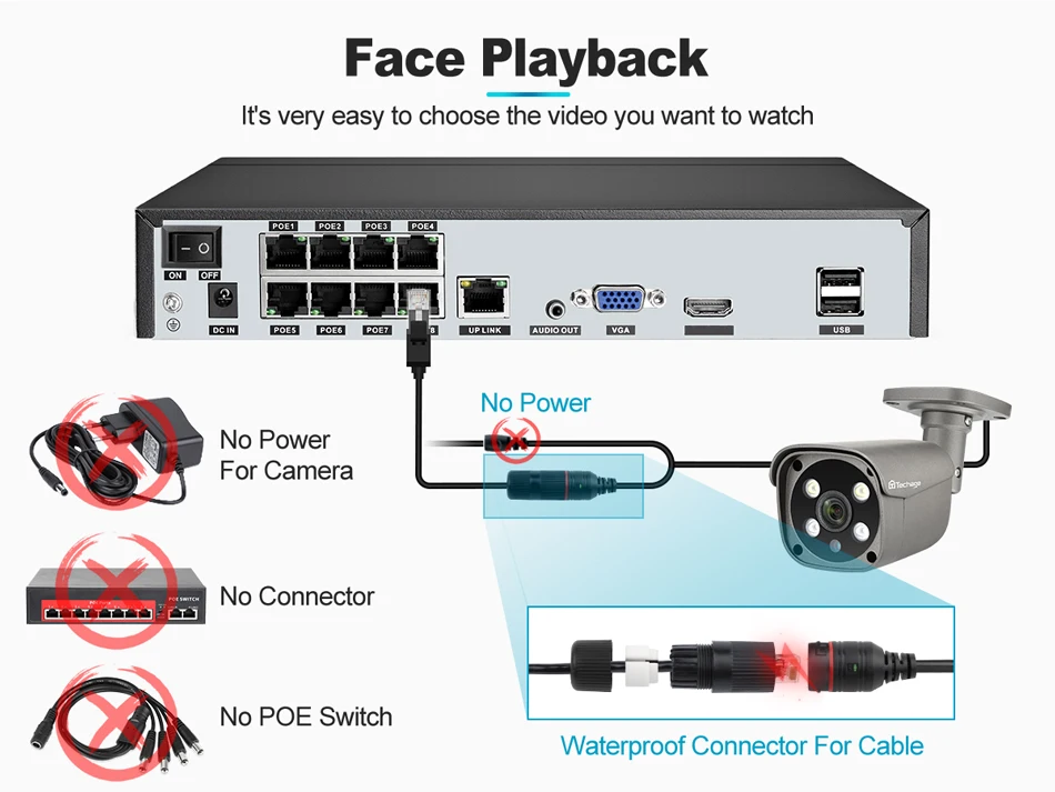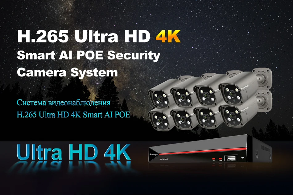 1. НашиНовая система камеры 4K POE. 8-канальный сетевой видеорегистратор NVR дизайн, Поддержка подключения до 8 шт камер, вы можете купить Techage ip-камеры с питанием по POE для расширения вашей системы видеонаблюдения.