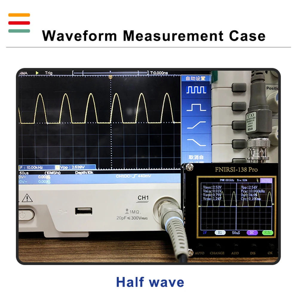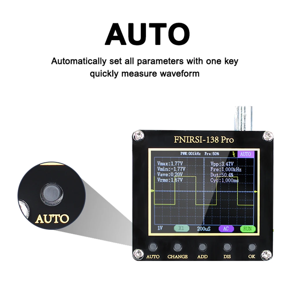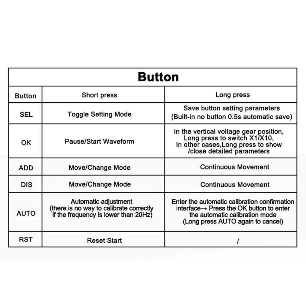 * 2. Автоматическая Настройка одной кнопкой: автоматическая настройка всех параметров и быстрое измерение формы волны. Нажмите на длинную автоматическую кнопку, чтобы быстро откалибровать базовый уровень.