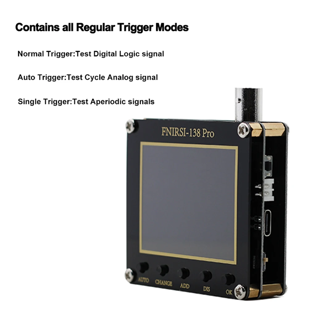 * 3. 3 режима триггера: Одиночный Режим триггера для тестирования неожиданных нерегулярных сигналов, автоматический режим триггера для тестирования регулярных аналоговых сигналов и обычный режим триггера для тестирования цифровых логических сигналов.