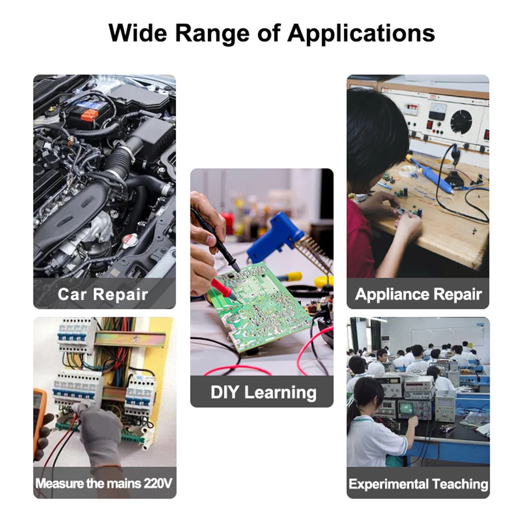 * 5. Широкий спектр применения: осциллограф подходит для ремонта автомобилей, самостоятельного ремонта, ремонта бытовой техники, экспериментального обучения и т. д.