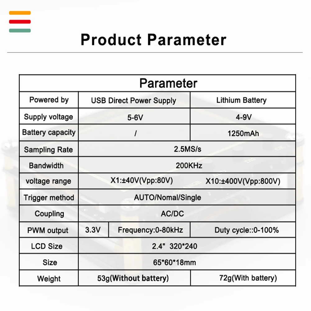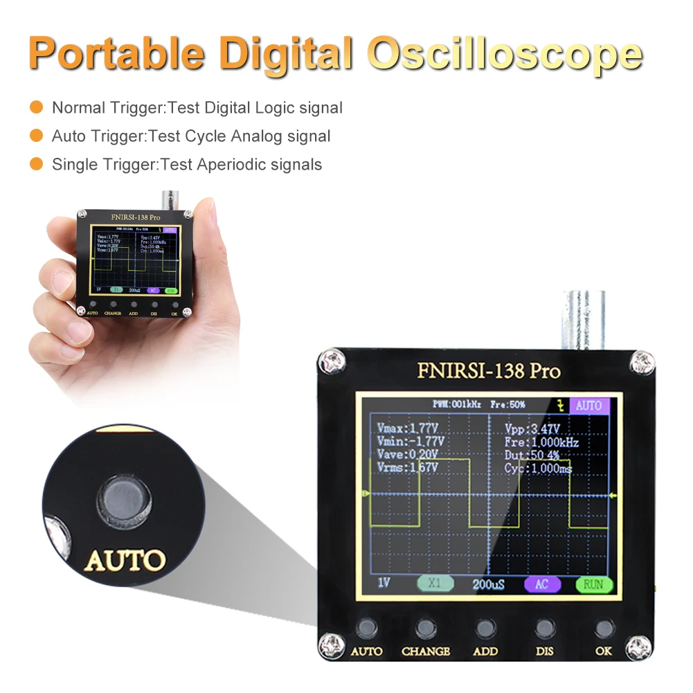 * 1. Портативный осциллограф: по сравнению с традиционными осциллографами, этот осциллограф меньше по размеру и больше подходит для переноски.