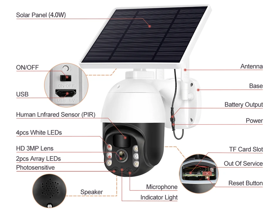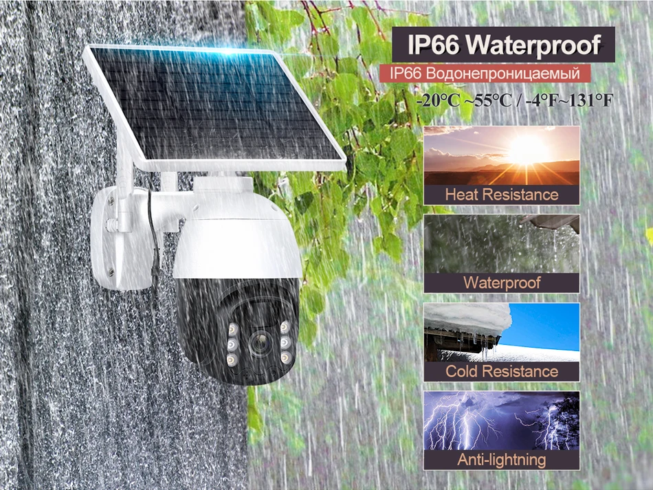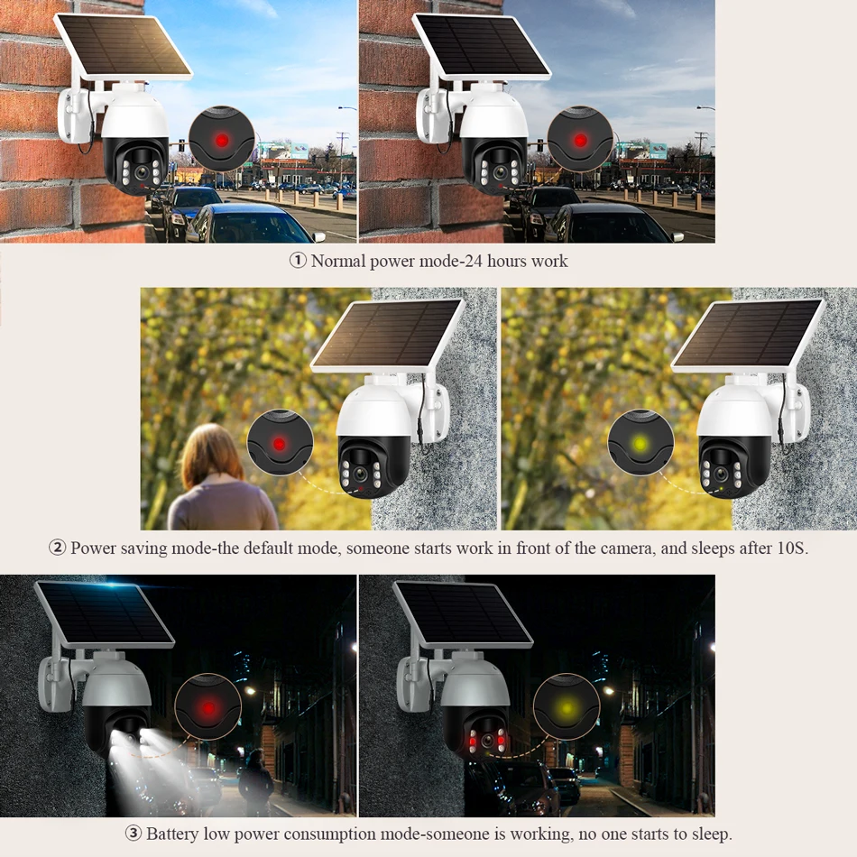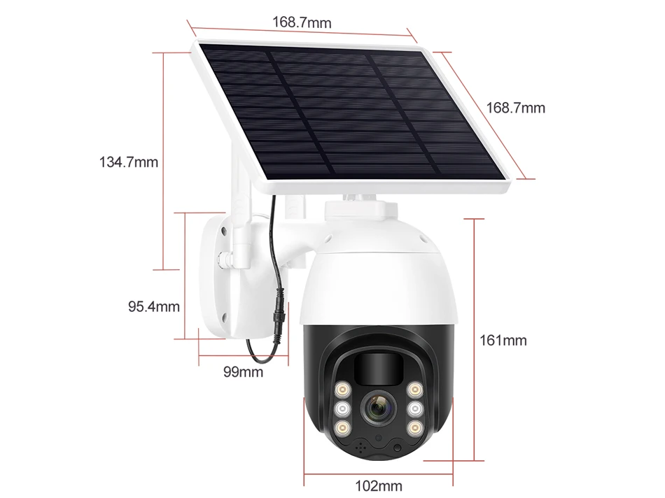This Camera can also powered by solar energy. The power of the solar panel is 4W, and it can supply power to the camera under the condition of sufficient sunlight outdoors. It solve the problem of manually charging the camera.