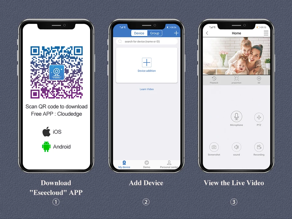 * Only works with Eseecloud app, don't support view by PC. Other third party apps not supported.