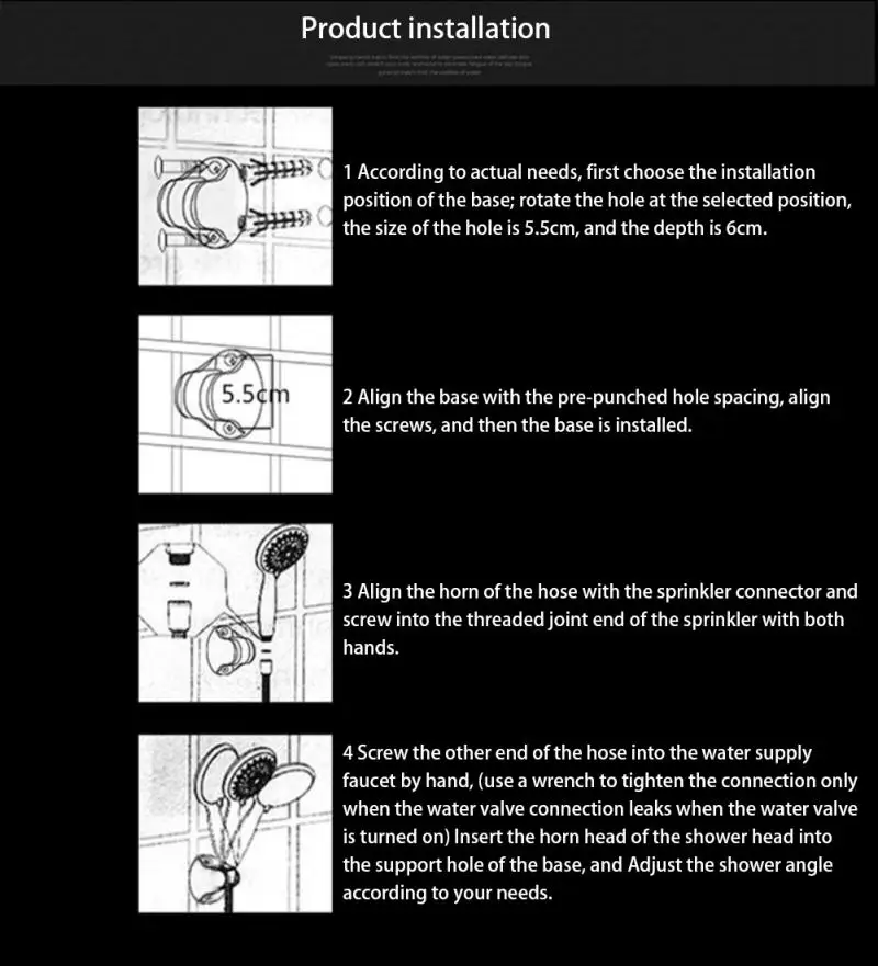 Простая установка-подключение к любому стандартному шлангу за считанные секунды, непосредственно в трубу для душа (шланг и основание для крепления не входят в комплект)