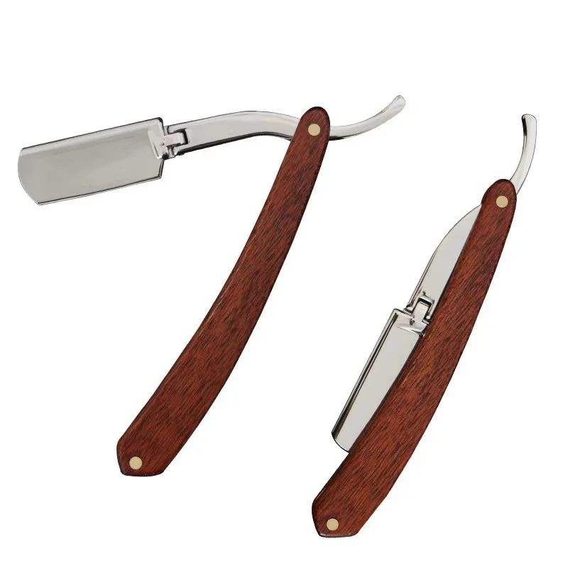 Лезвие из нержавеющей стали с деревянной ручкой, бритва с прямым краем, складной ручной нож, борода, деревянная бритва