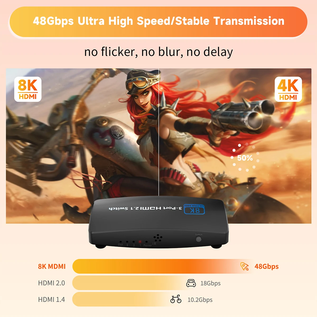 Обеспечение наилучшего изображения. 2,1 HDMI переключатель с пультом дистанционного управления коробка поддержка s самую последнюю в с высокой пропускной способностью цифровой Содержание защиты и HDMI specification гарантирует Совместимость на уровне систем и стабильности во всем мире. И эти HDMI 4K 120Hz переключатель коробки протестированы для работы с Xbox серии X,PS5,Nvidia 3060Ti,Nvidia 3070Ti,Nvidia 3090TI.
