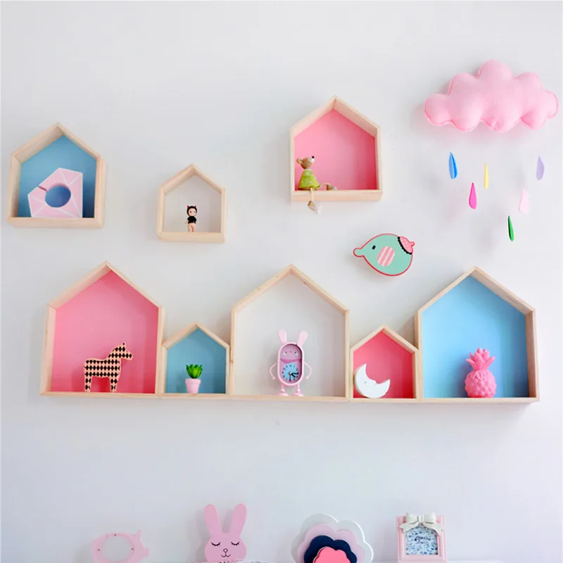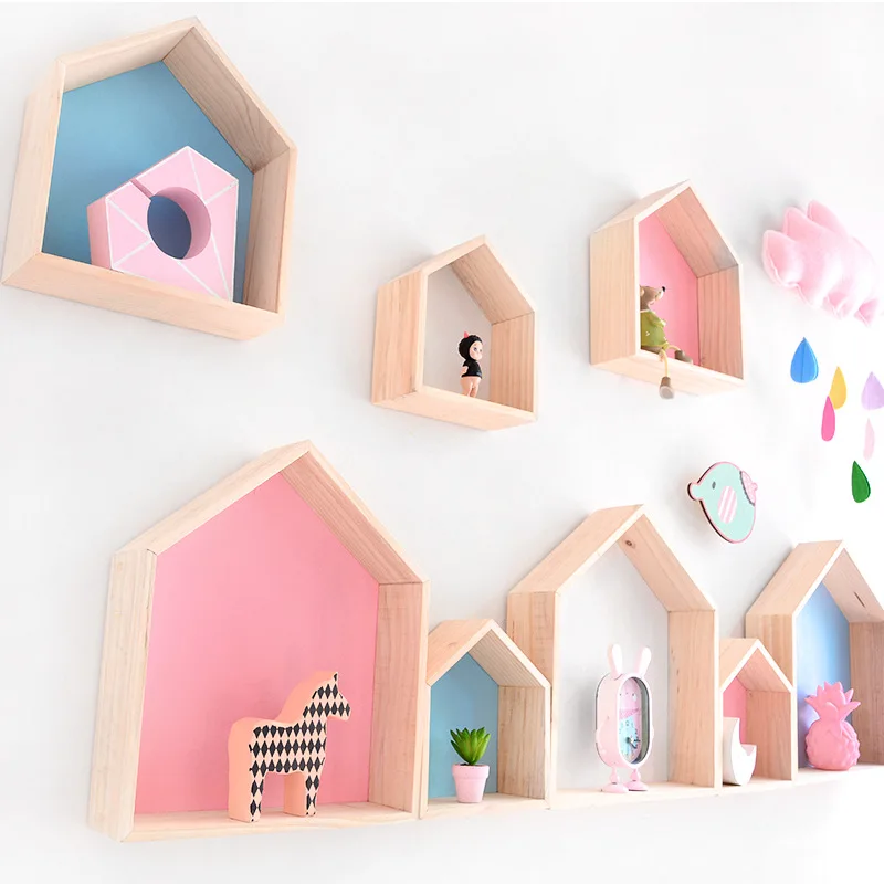 2 шт. деревянная плавающая полка в форме дома настенные декоративные полки стеллаж для хранения для детей, декор для спальни, органайзер для детской комнаты