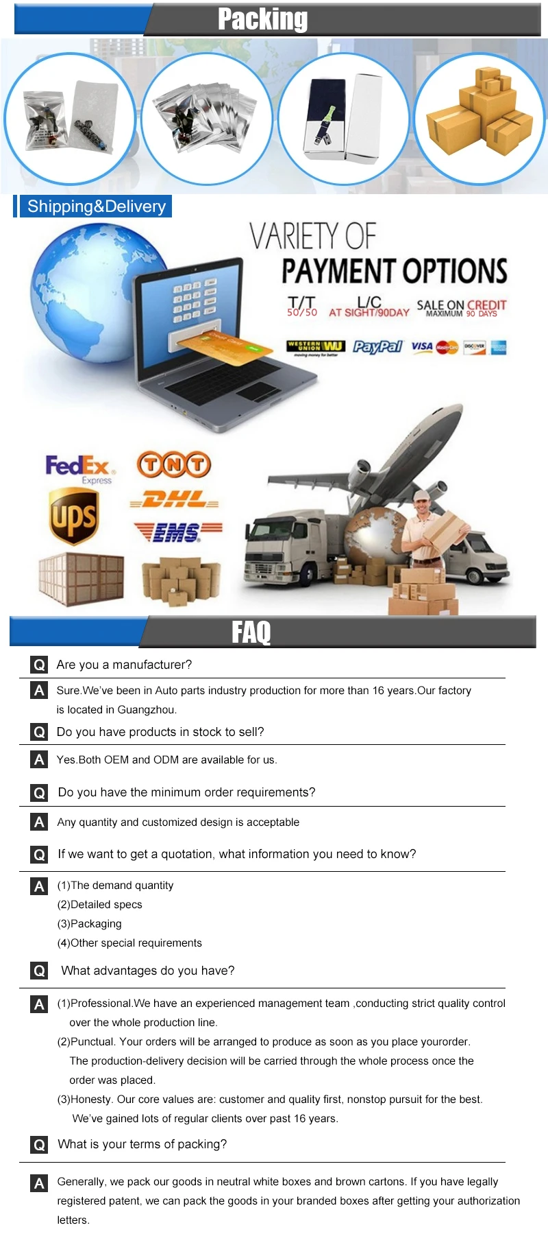 Нейтральные упаковочные коробки, полиэтиленовые пакеты или Заказная посылка.