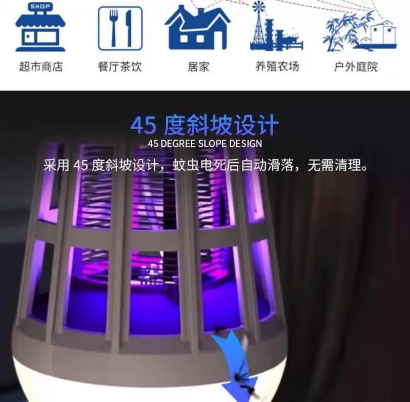 【Использование в помещении и на открытом воздухе 】: эффективно убивает насекомых, комаров, мух, мотылей и других летающих насекомых в пределах 20 квадратных метров, можно использовать d в Хо использовать s, yards, Garden, backyards, porches, внутренние дворики, портативные, как палатки кемпинга света или ресторанов, отелей, кафе коммерческого использования.