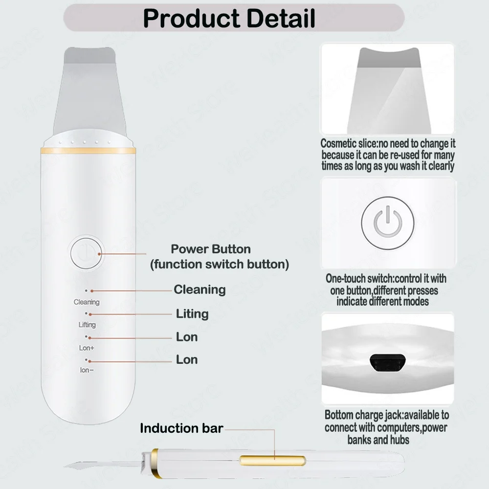 1. Глубокое очищение: способ 45 градусного угла для ускорения метаболизма клеток эпидермики и обновления его нормального уровня обновления, повышает выпадение пожилых и нерегулярных аберрантных клеток, смягчает кератин, отрегулируйте эпидермические клетки, восстановив эластичность кожи и обратившись к твердой, гладкой и нежной коже. 2. Лидирующий в питании и активации кожи путем принятия ультразвуковой вибрации и тепидного эффекта, он может способствовать циркуляции крови внутри дермы, ускоряет лимфатический возврат, токсин разряда, который накапливается в более глубокой коже и устраняет мертвые клетки, чтобы избежать чрезмерного скопления клеток корнеозного слоя, таким образом, чтобы вода и питание быстро переносились, Улучшает проницаемость клеток, укрепляет уход за кожей, улучшает увлажнение кожи.