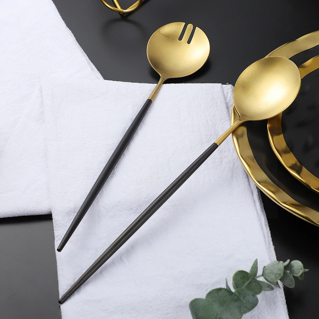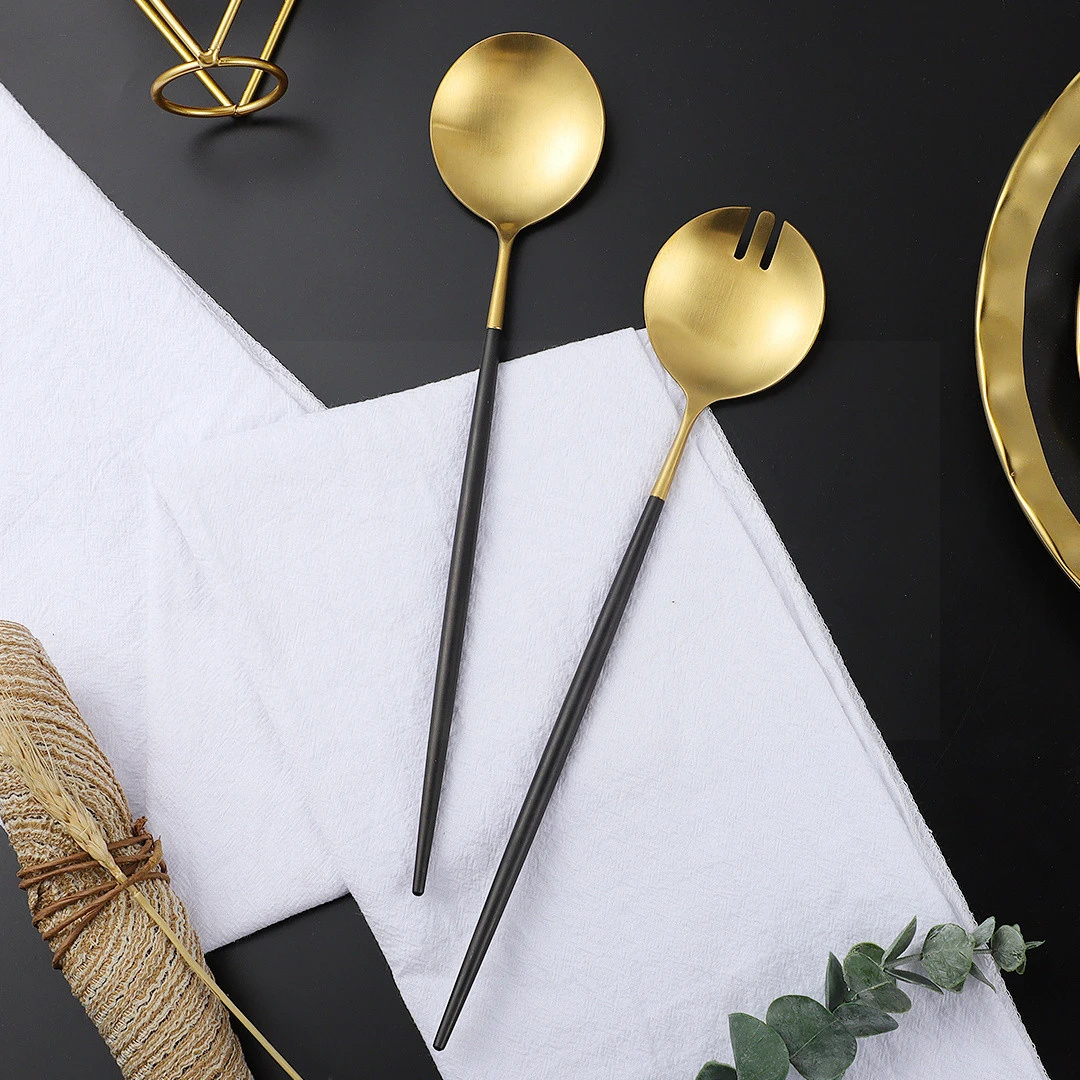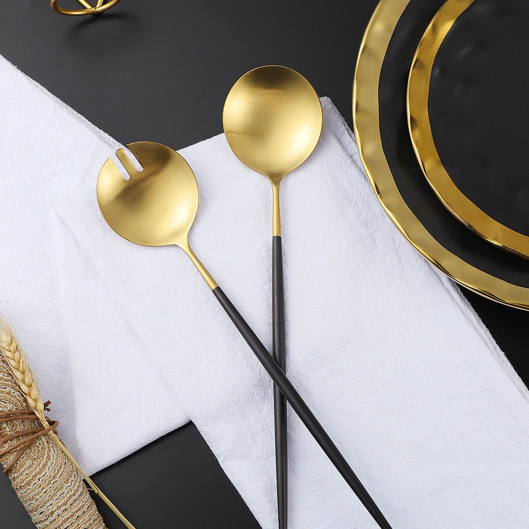 Черный золотой салат, распределяющая посуда, столовый набор из вилок, ложка, набор посуды, кухонная утварь, обслуживание, салат, посуда, Прямая поставка