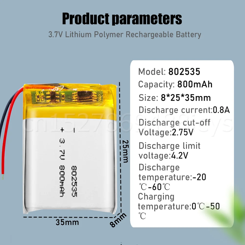 802535 3,7 V 800mAh литиевая полимерная аккумуляторная батарея для MP4 MP5 GPS DVD PDA Walkie-talkie Recorder Bluetooth гарнитура 082535