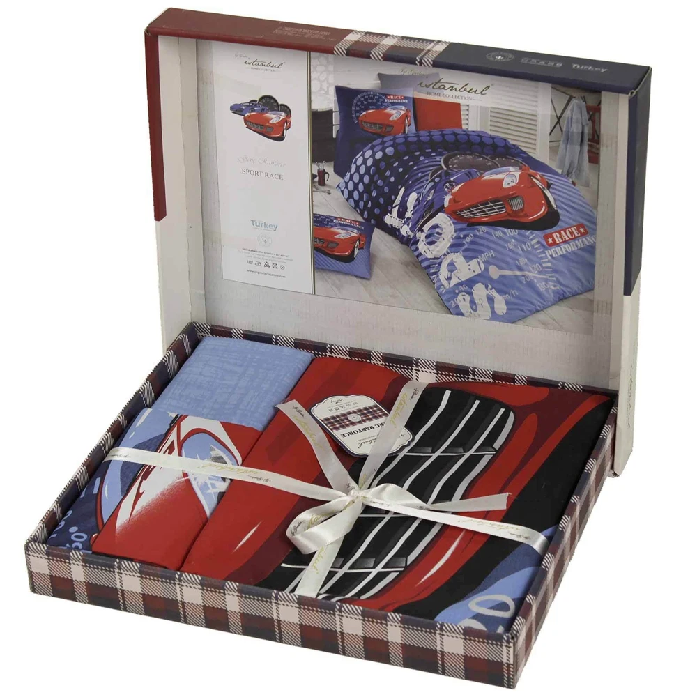 Комплект постельного белья "Спортивные гонки", синий, "Istanbul" Sport Race. Стильное постельное белье с интересным рисунком для подростка.