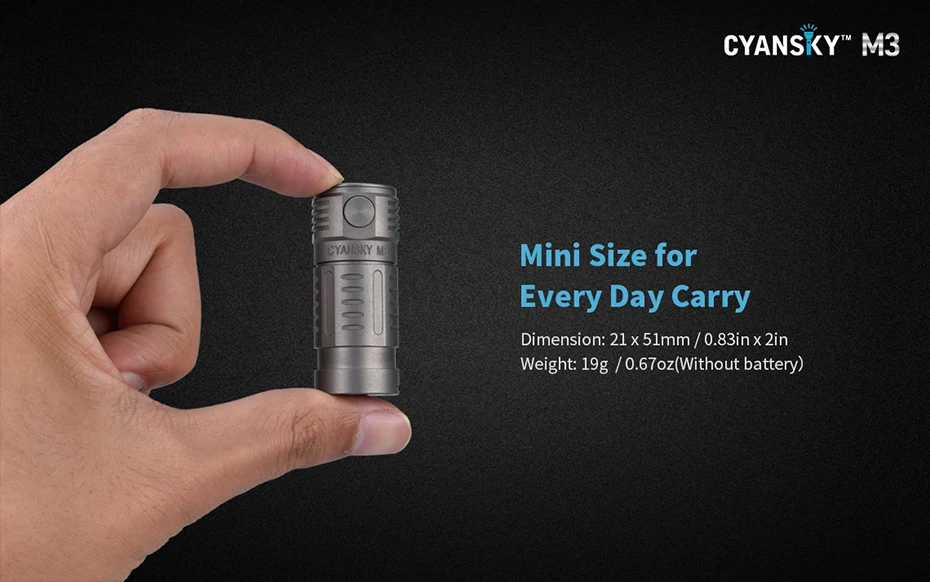 Чрезвычайно жесткий EDC титановый фонарикCyansky M3 защищен чрезвычайно жестким титановым материалом, а также максимальной мощностью 700 люменов и дальностью луча 73 метра.