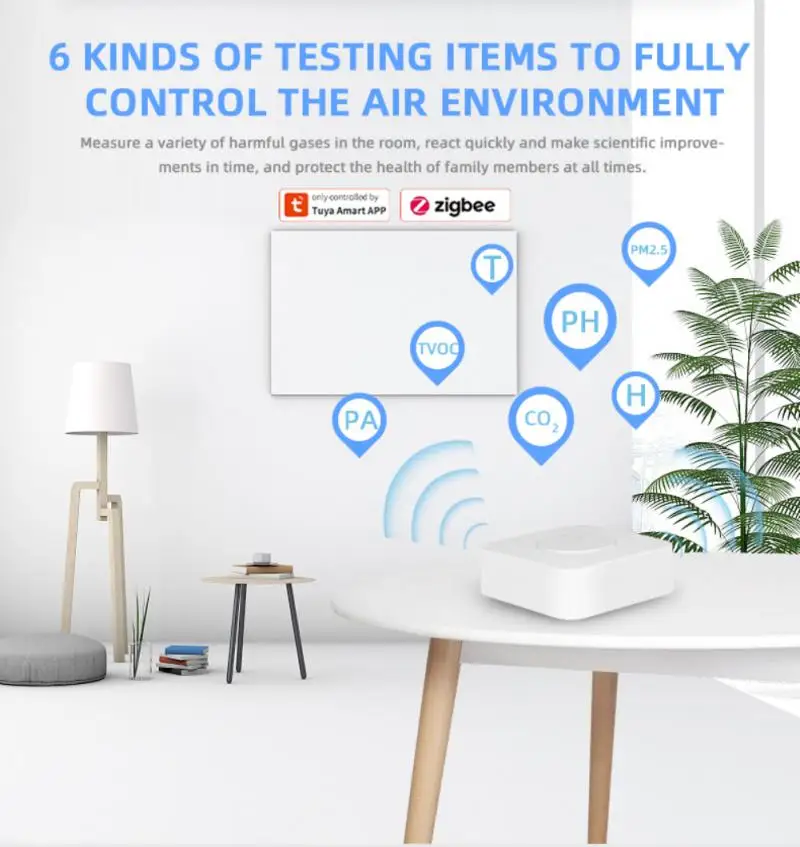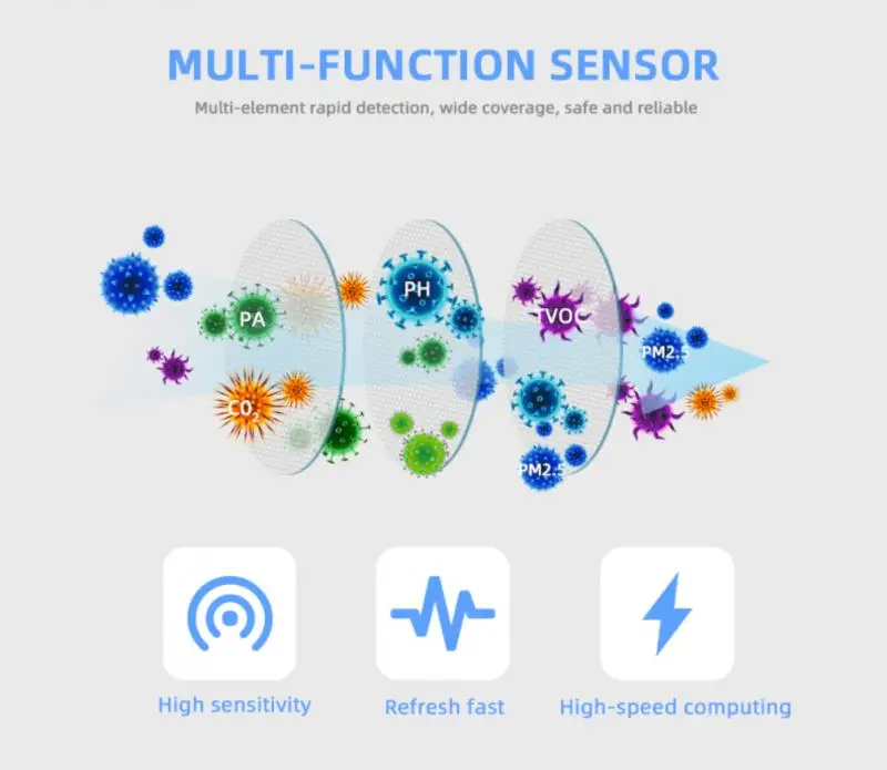 Он также может обнаруживать PM2.5, формальдегид, ЛОС ядовитого газа, CO2, температуру, влажность и т. д. 6 видов экологических параметров, в экологических параметрах автоматически превышают цену, когда граффити Умный домашний Кондиционер воздуха, новый вентилятор, увлажнитель воздуха, очиститель воздуха для оптимизации бытовой среды. Примечание: Пожалуйста, не помещайте воздушную экономку в лампу черного цвета слишком большой, сильный конвекционный воздух или в Высококонцентрированный органический газ в течение длительного времени, в противном случае это будет